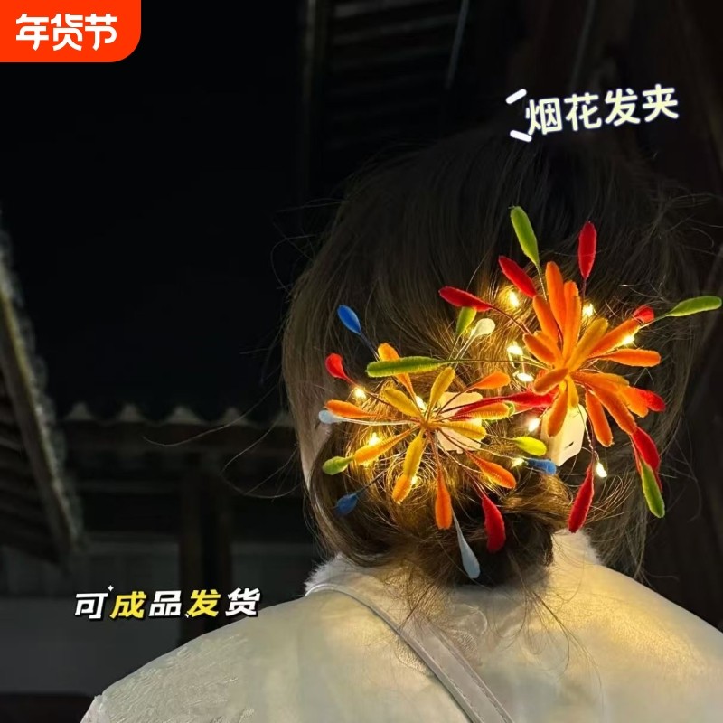 烟花发夹创意扭扭棒diy头饰品2026新年跨年元旦出片拍照氛围发饰