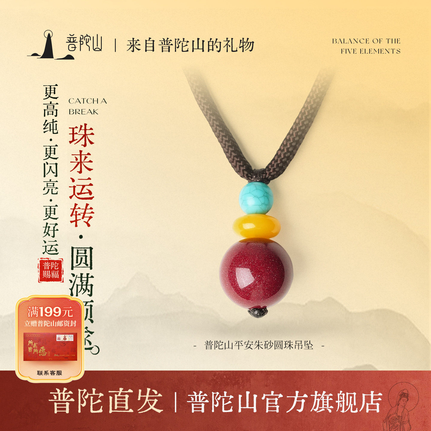 普陀山天然高含量朱砂吊坠官方正品蜜蜡项链好运护身符女朋友礼物
