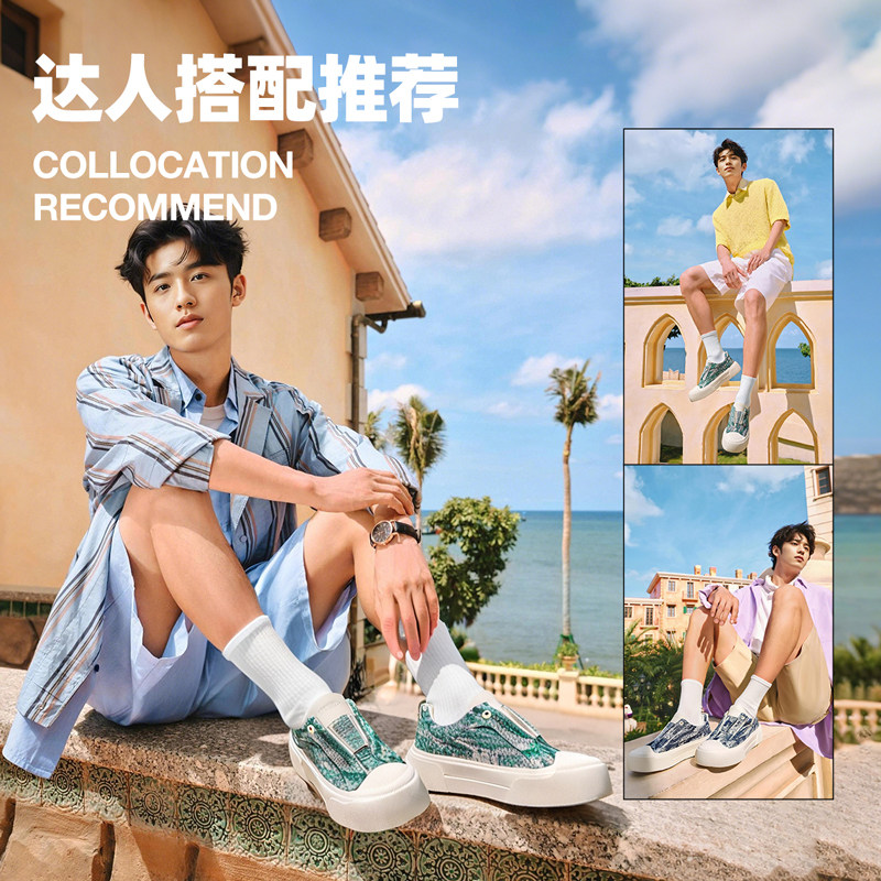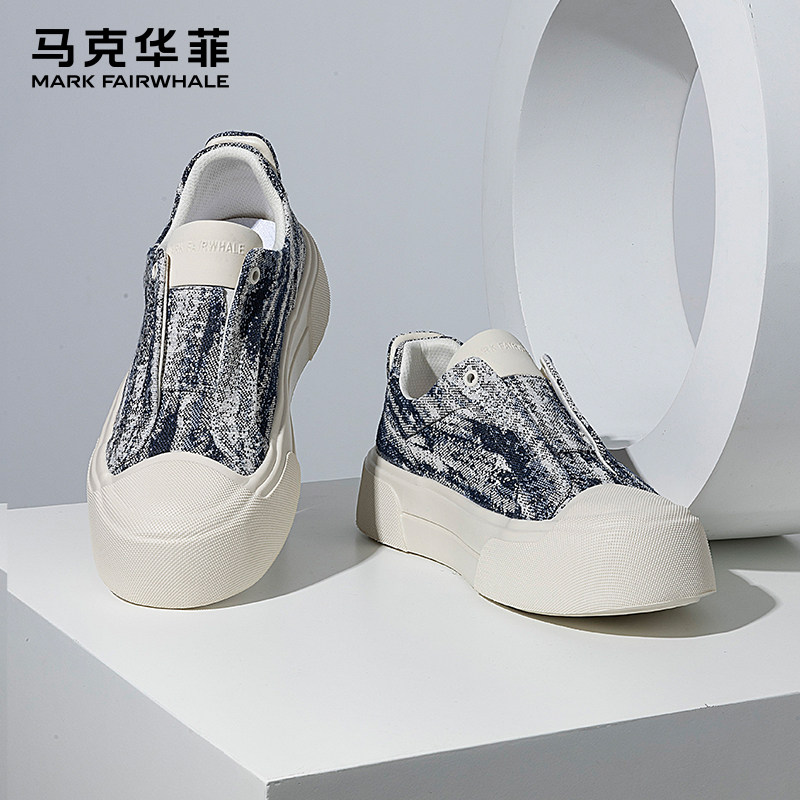 马克华菲一脚蹬男鞋2025新款秋季透气帆布鞋男厚底男士休闲滑板鞋