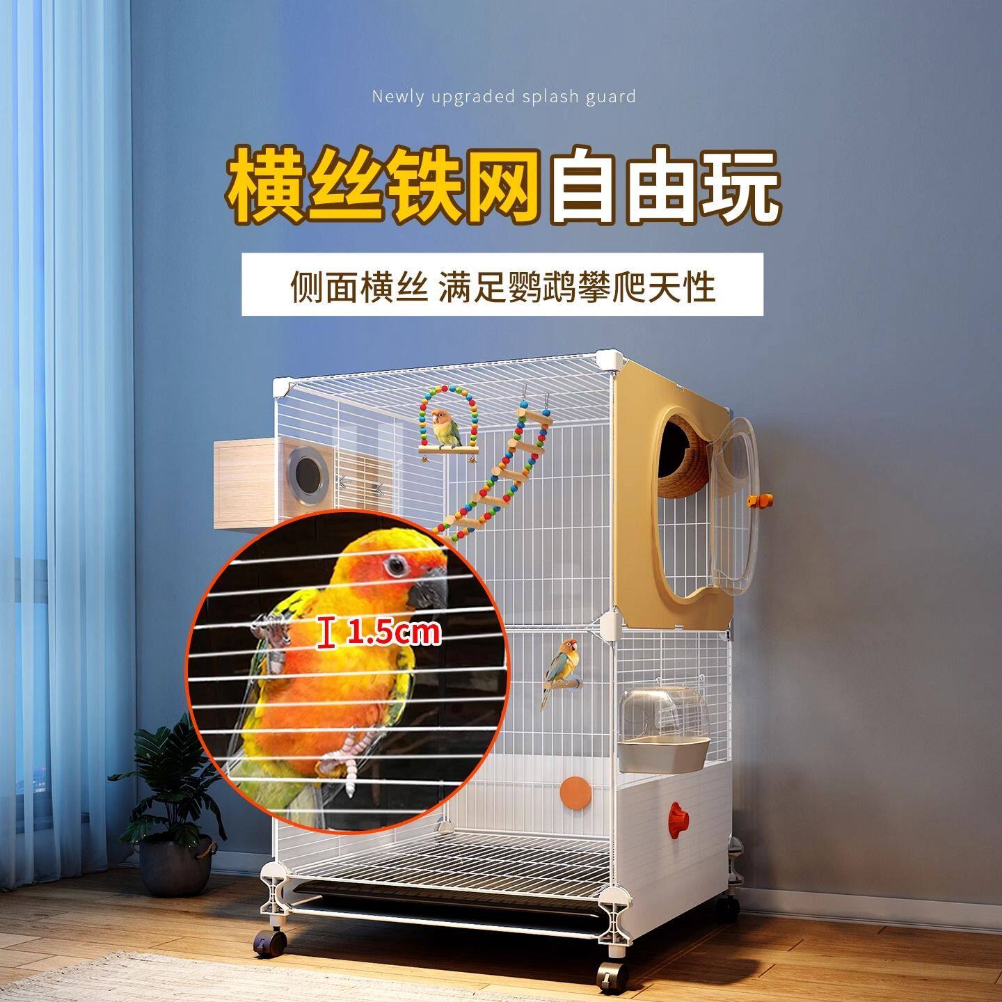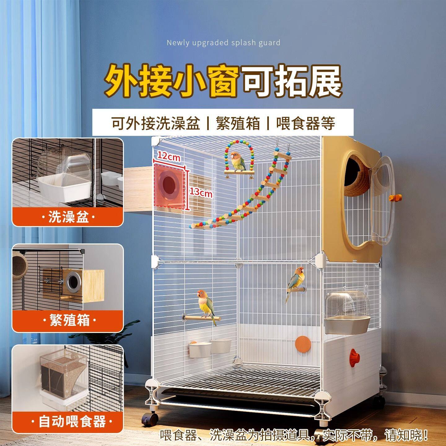 鸟笼鹦鹉笼子家用大号豪华别墅新型防溅小太阳八哥专用鸟笼子双层