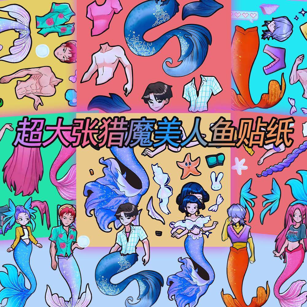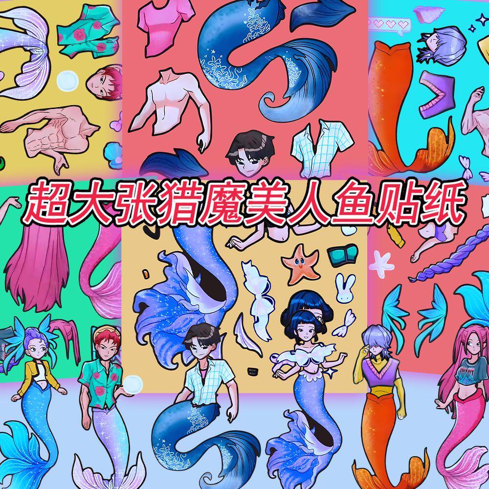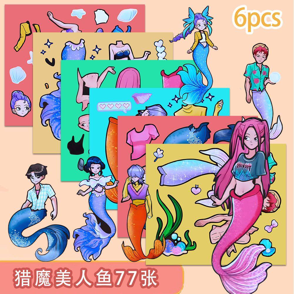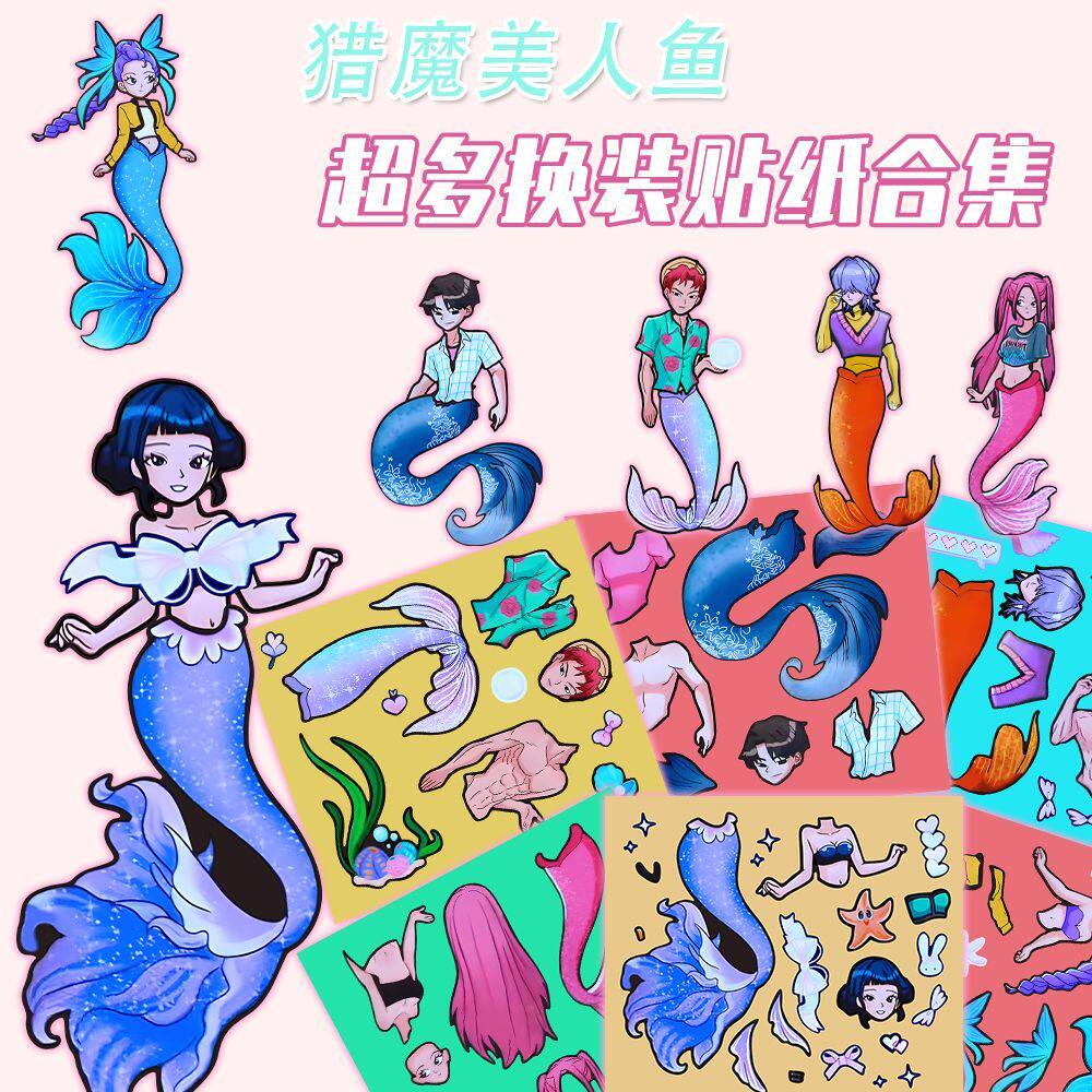 新款:Kpop猎魔女团人鱼装扮换装贴纸儿童益智趣味手工创意贴画