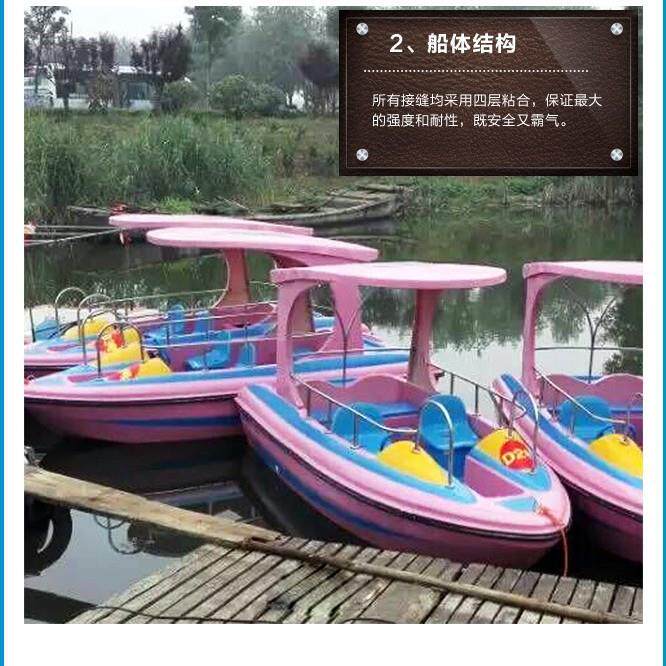 水上乐园休闲娱乐电动船自排水玻璃钢浠水脚踏船快艇手划船