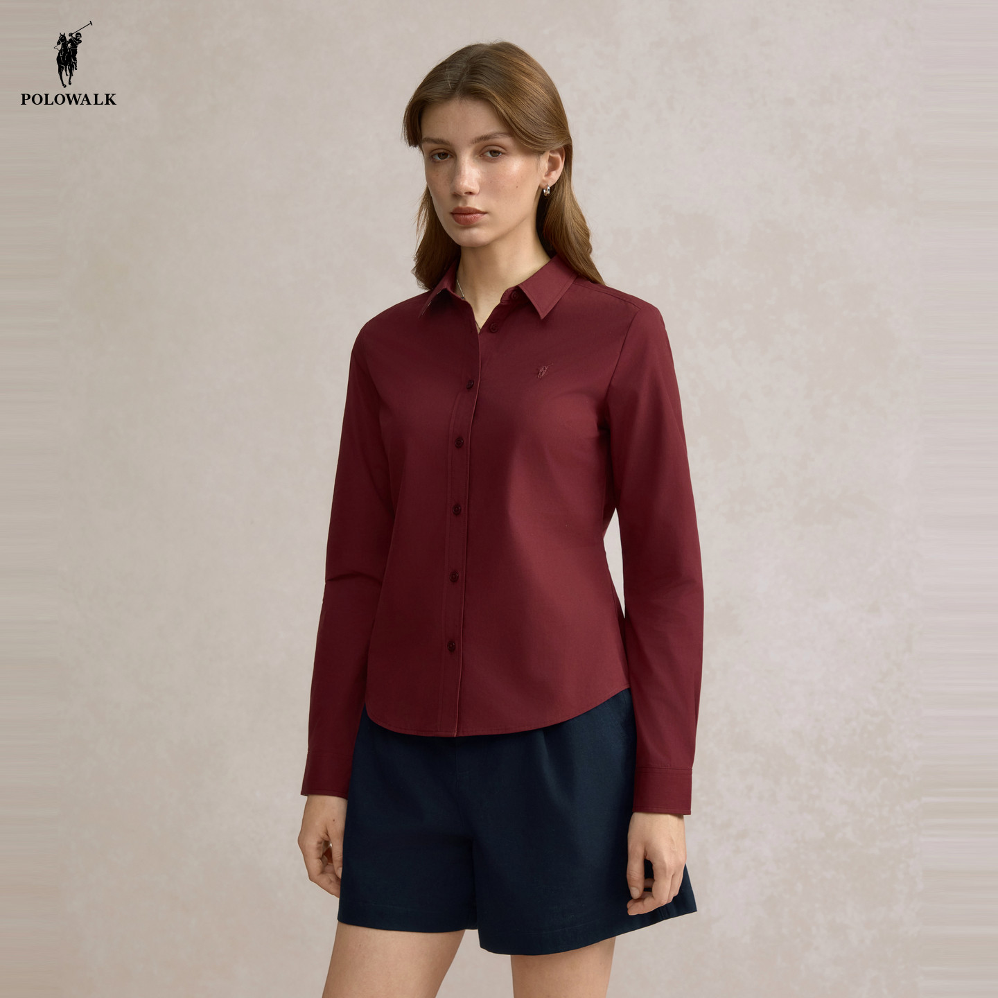 【100%棉】POLOWALK女装2026春季新品女式长袖翻领修身轻薄衬衣女