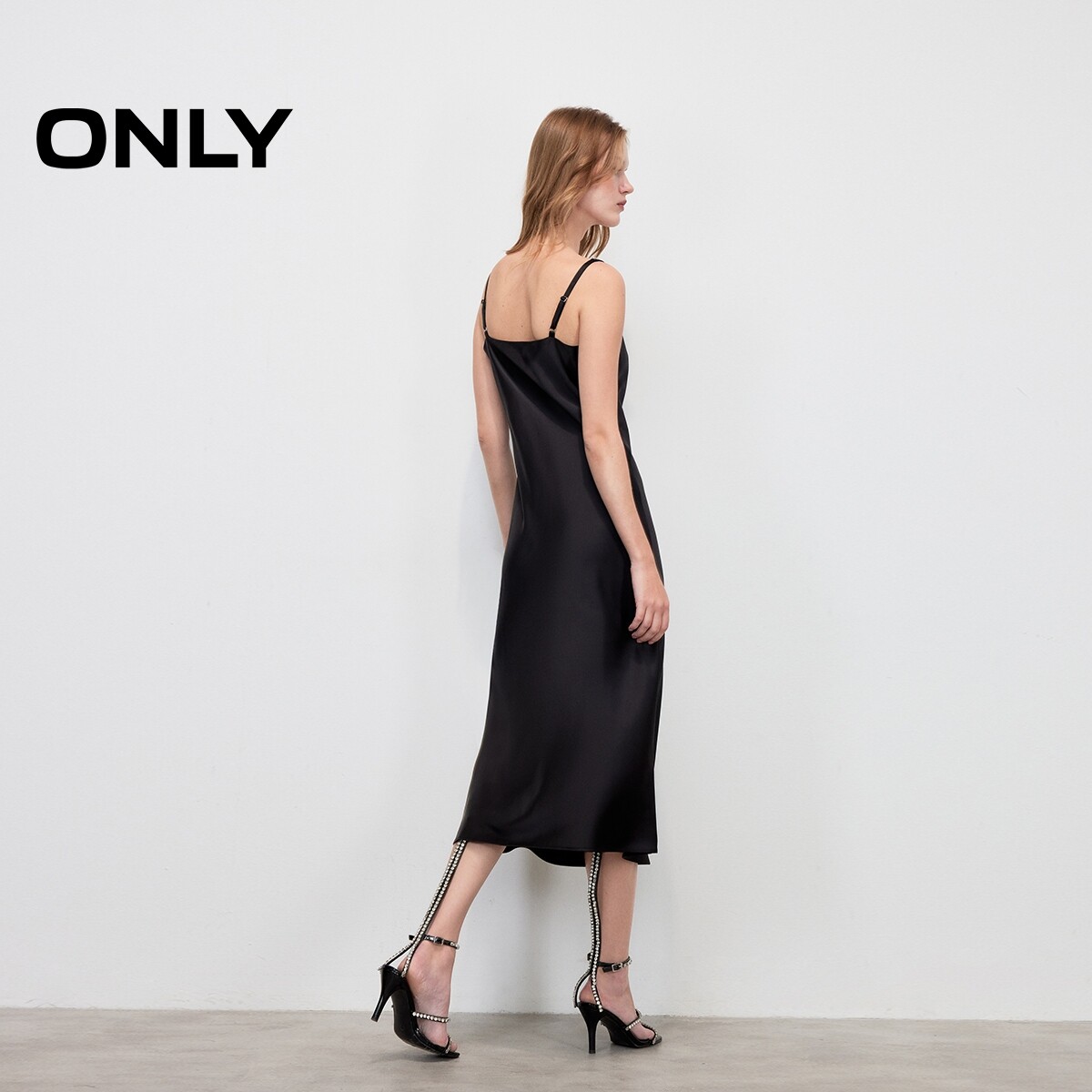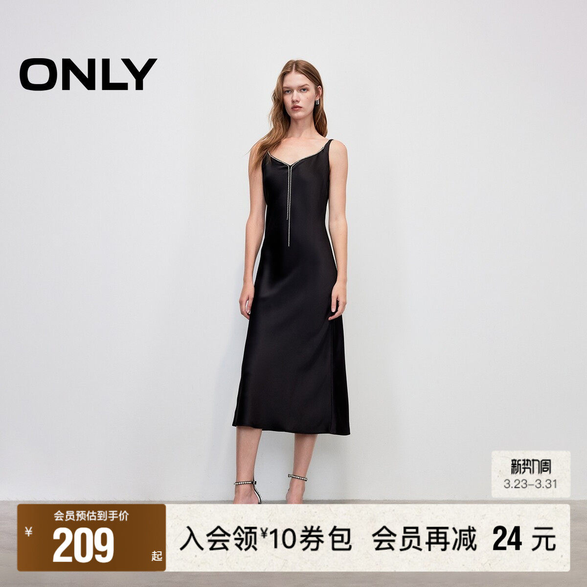 【ONLY奥莱】春夏水钻装饰小黑裙V领收腰吊带裙中长裙连衣裙女