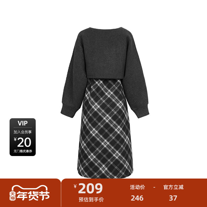 【秒杀】sdeer圣迪奥时尚格纹针织衫连衣裙套装S223Z1455