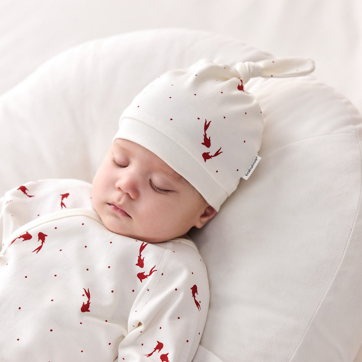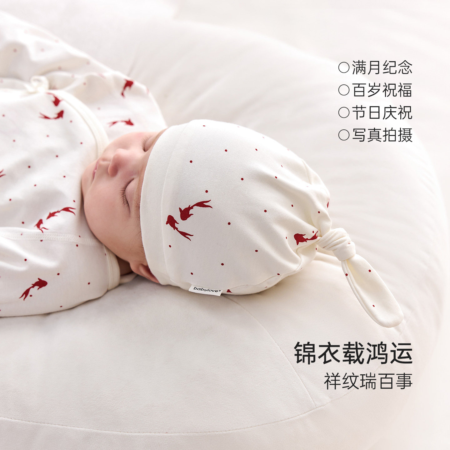 babylove【安心柔】婴儿胎帽春秋满月新生宝宝新年帽子岁禧鳞光