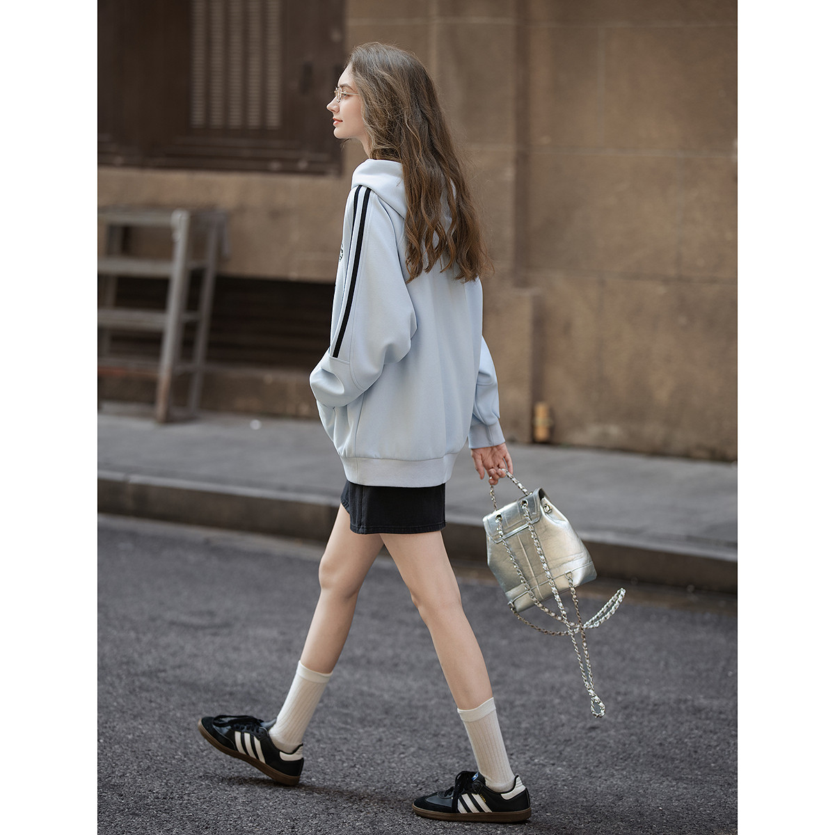 三福卫衣开衫2025新款秋季连帽情侣款外套宽松慵懒风灰色上衣女装