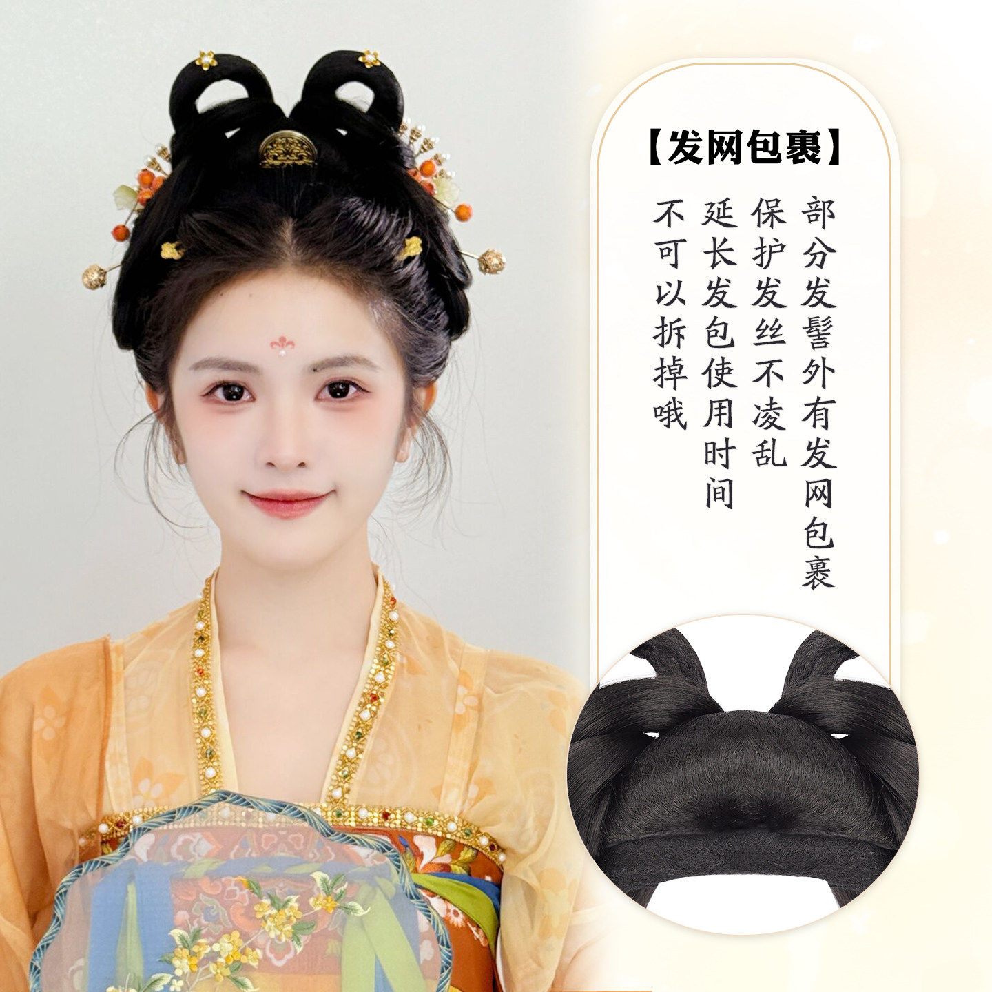 古风汉服假发髻一体式全发丝盘发发包古装唐风头饰日常垫发造型女