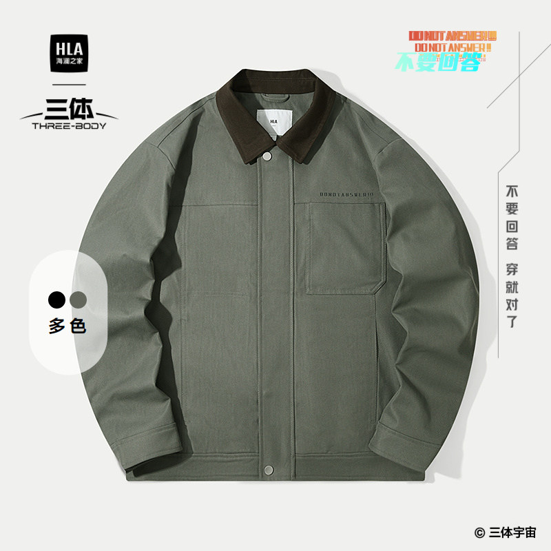 海澜之家三体·不要回答金句翻领夹克25秋新工装撞色巴恩风外套男
