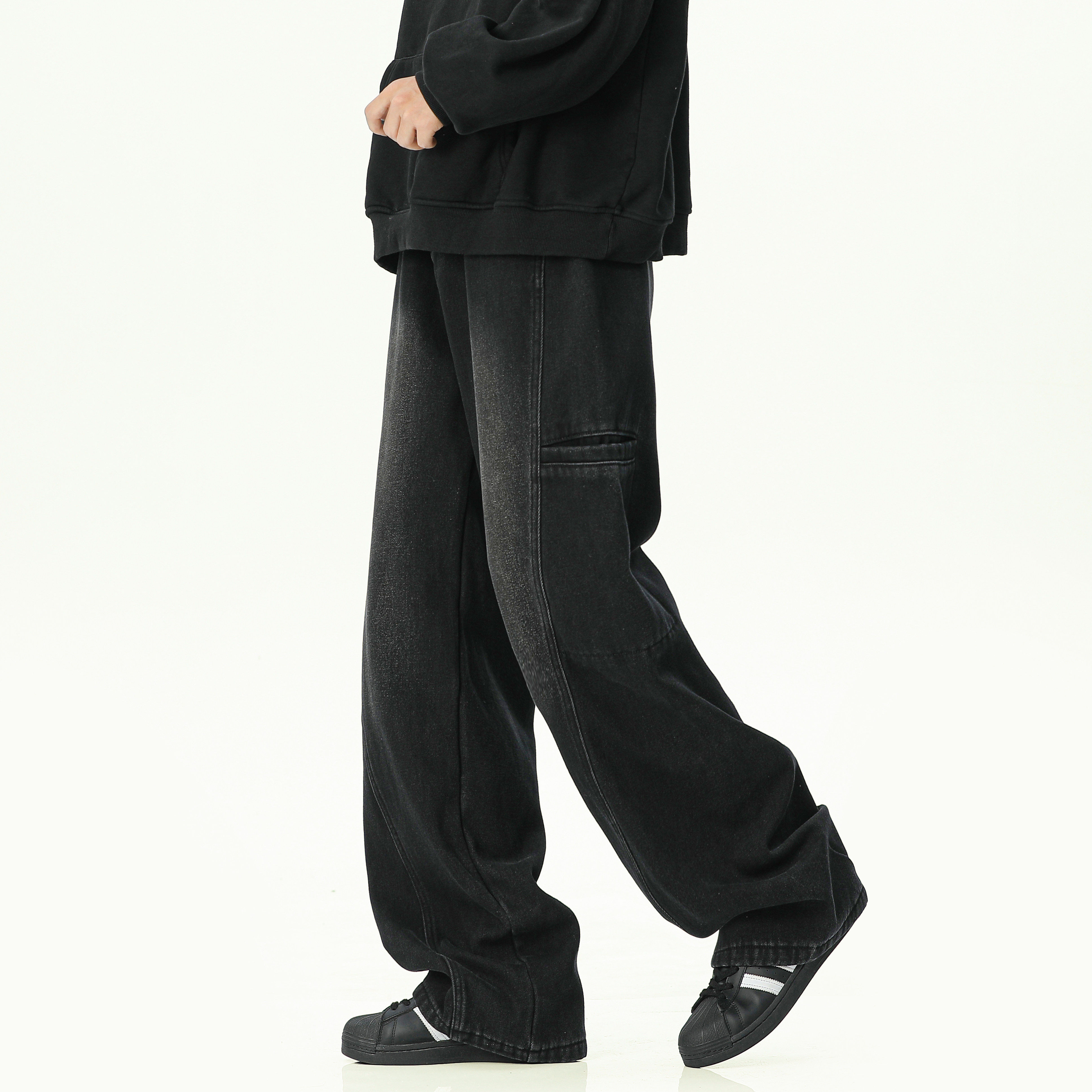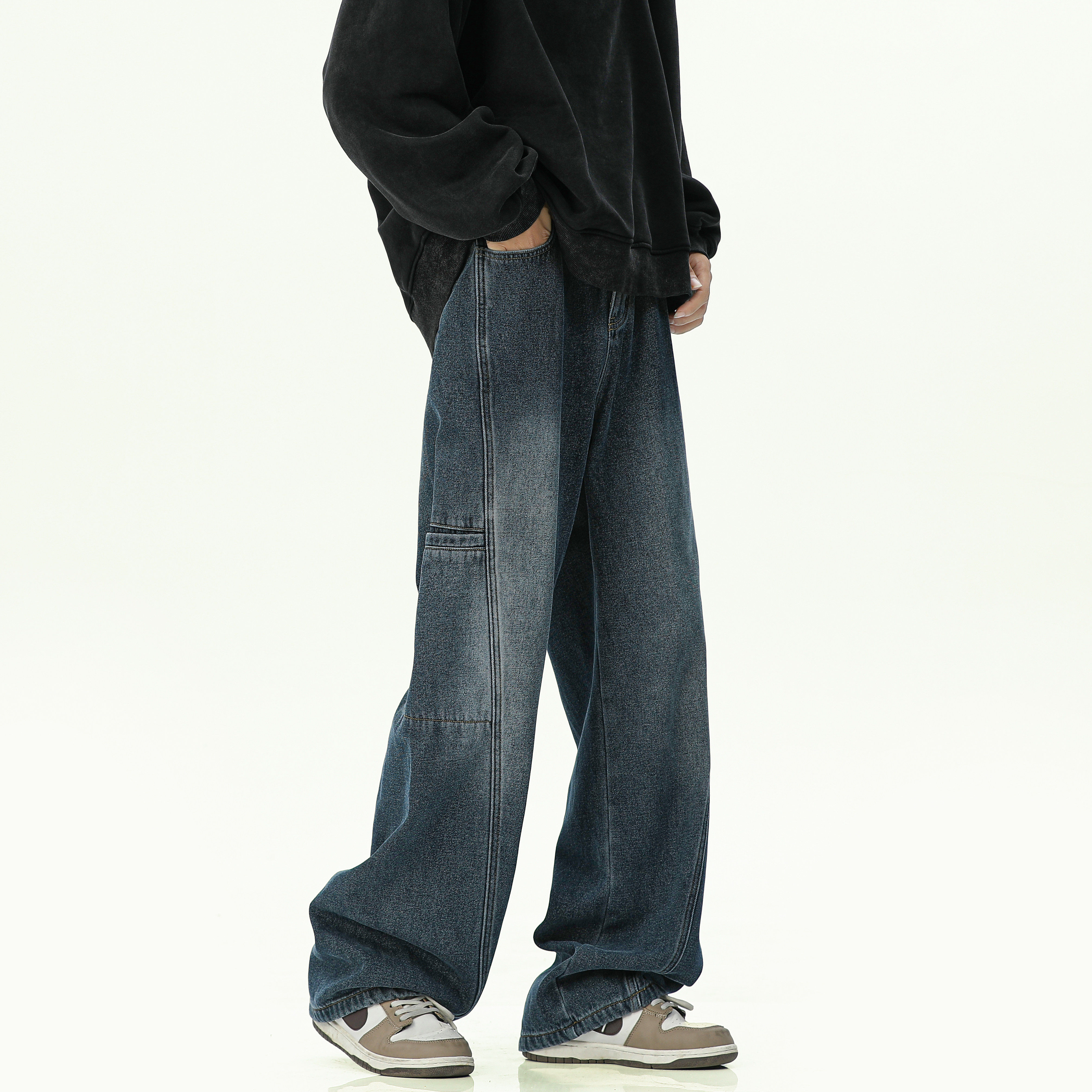 阔腿牛仔裤男士2025春秋新款美式复古宽松大码冬季休闲直筒裤子男