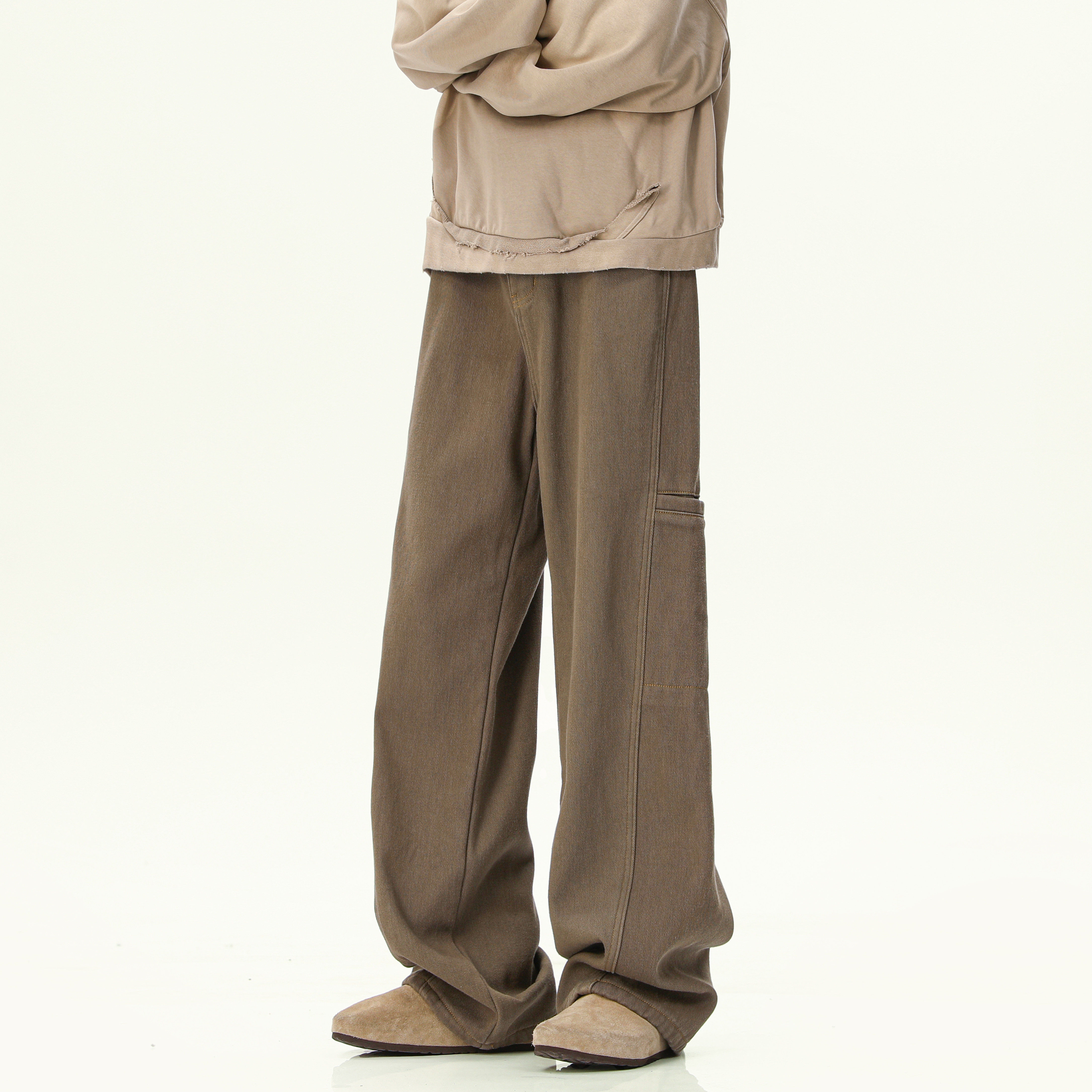 RAPPEYE 国潮设计感复古美式高街宽松显瘦直筒侧袋弯刀阔腿牛仔裤