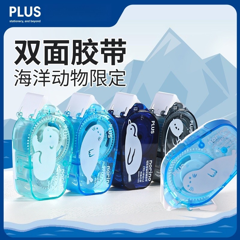 日本PLUS普乐士OA轻松双面胶带海洋动物限定手账手工用mini点点胶