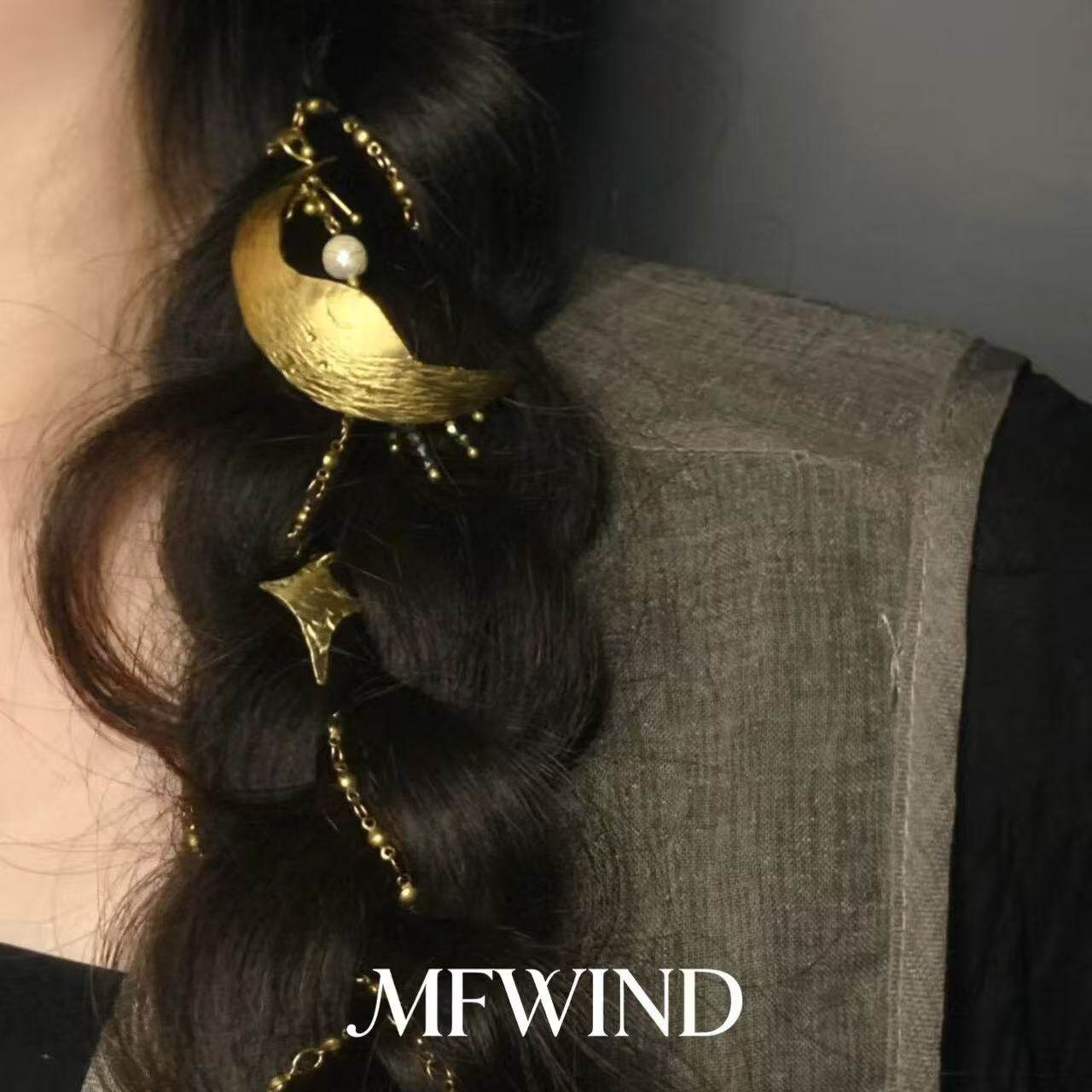 【月光入梦】原创金属月牙芒星流苏发链女复古波西米亚编发发饰品