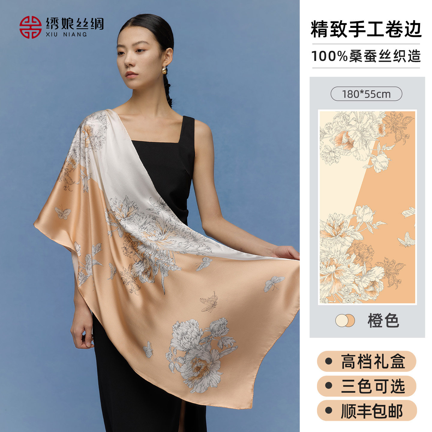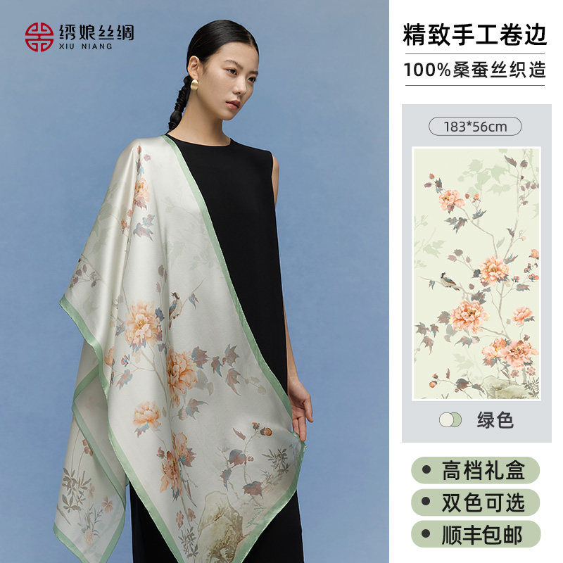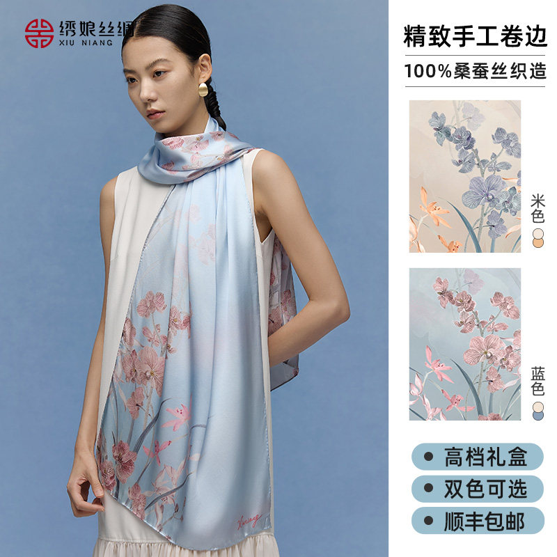 绣娘丝绸100%桑蚕丝真丝丝巾系脖高级感披肩女外搭送女友礼物礼盒