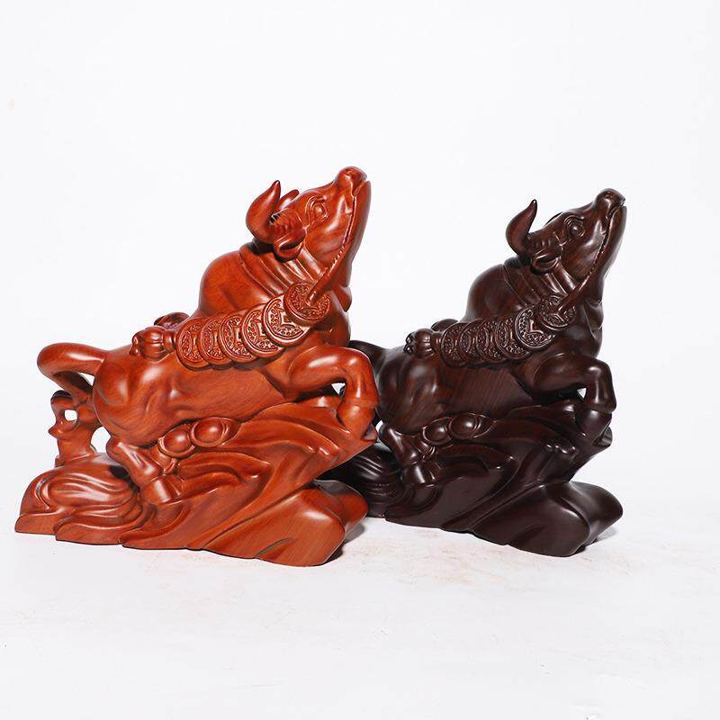 木雕黑檀牛摆件花梨木抬头旺财牛实木雕刻工艺品办公室桌面装饰品