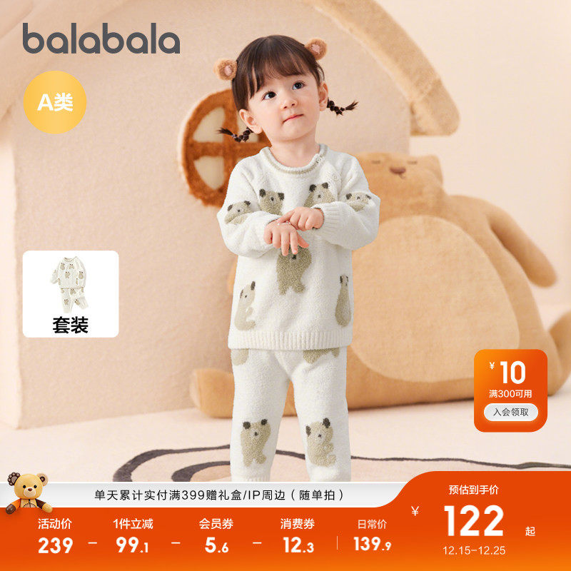 巴拉巴拉童装婴儿内衣套装男女童冬家居宝宝秋衣裤2025新款半边绒