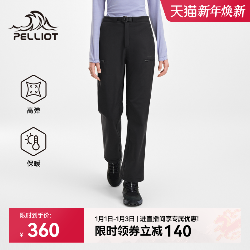 伯希和户外软壳裤女款冬季保暖运动长裤防风徒步登山裤抓绒冲锋裤