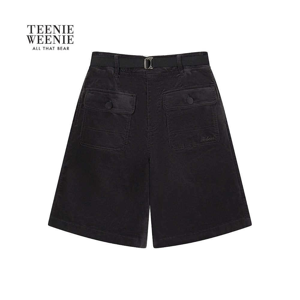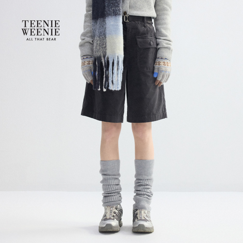 TeenieWeenie小熊女装简约休闲裤2025冬新款花苞腰头工装绒感短裤