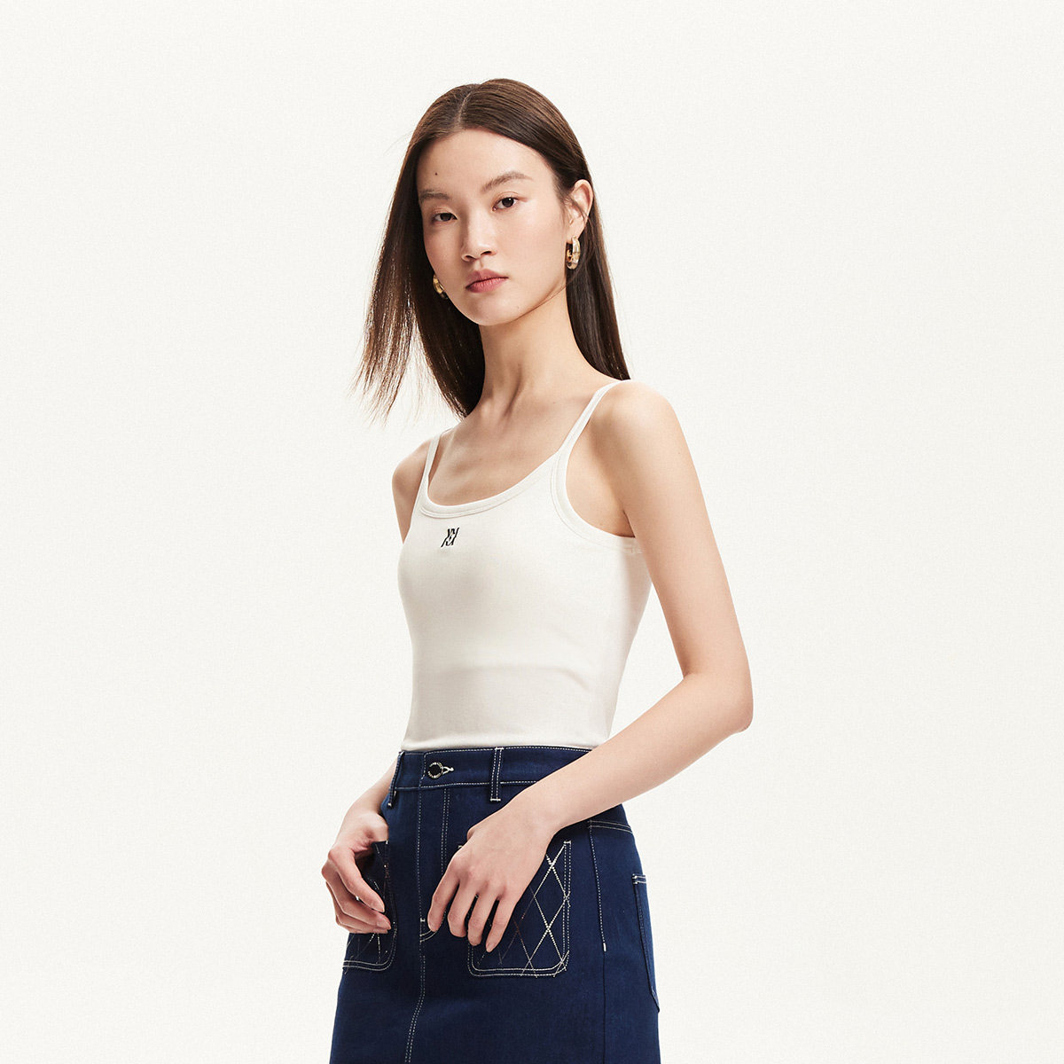 Vero Moda吊带女2025秋季新款自带胸垫字母刺绣修身吊带百搭背心