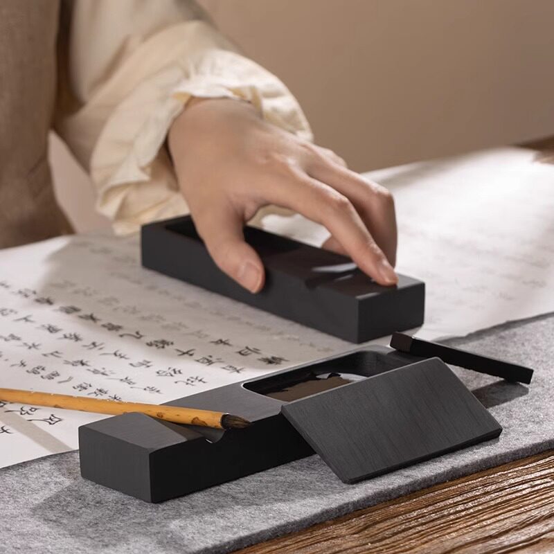 筠墨轩多功能砚台砚台毛笔书法专用带盖歙砚墨条砚石墨盒原石天然高档素砚镇纸多功能笔笔洗镇尺墨碟笔墨纸砚