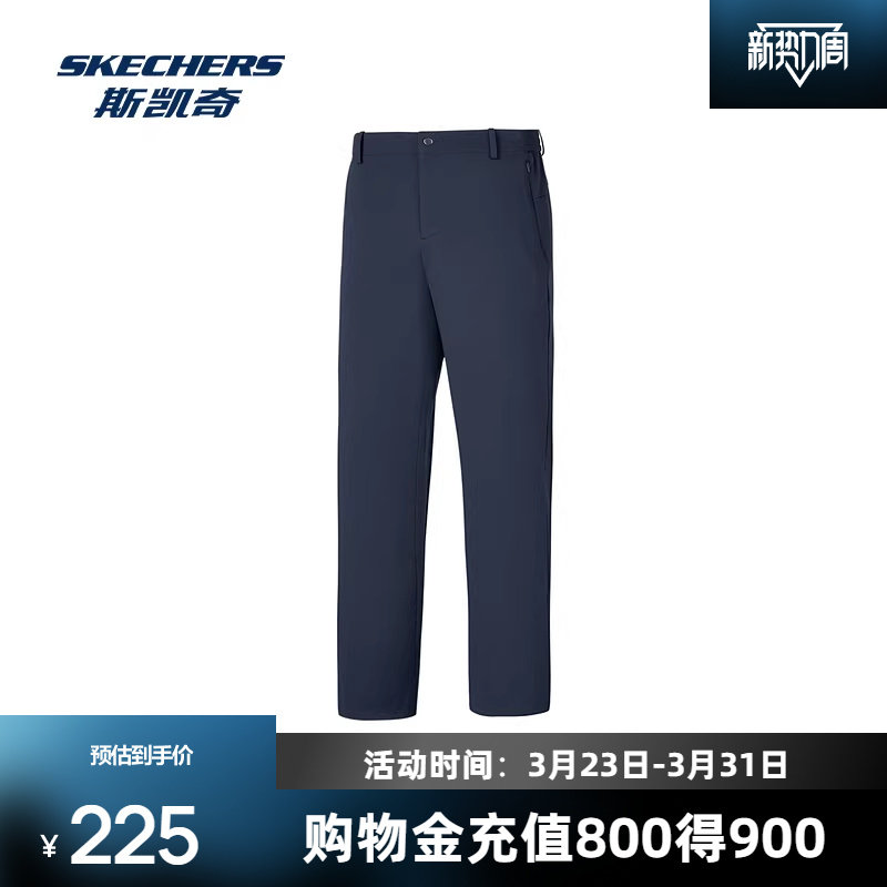 斯凯奇闪穿针织长裤春季新品男款黑色运动裤健身裤吸湿速干