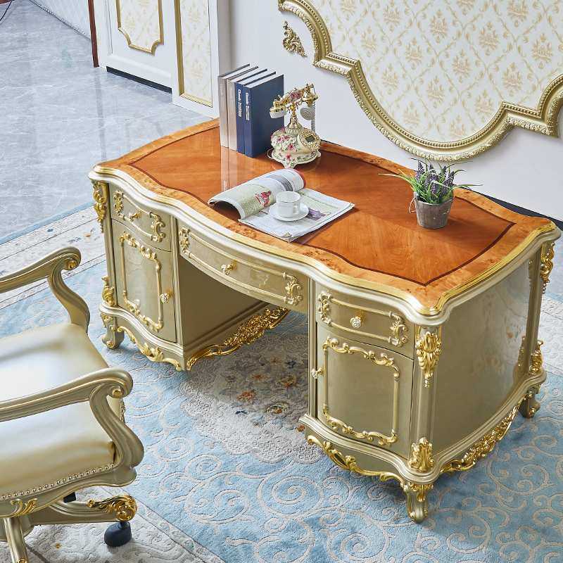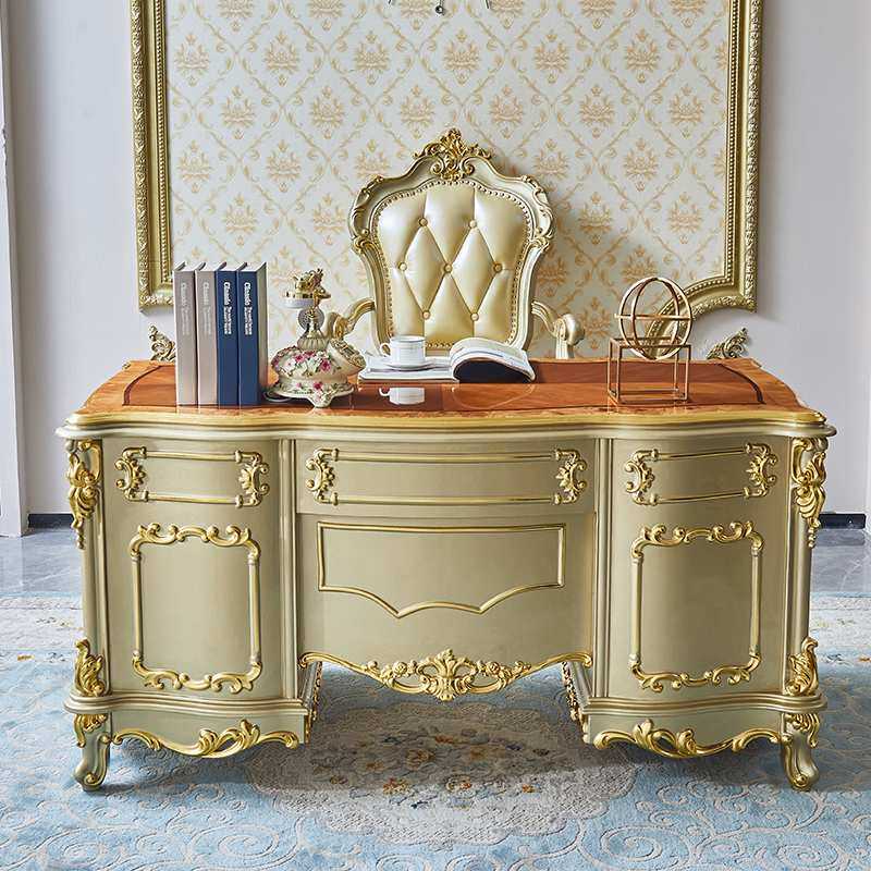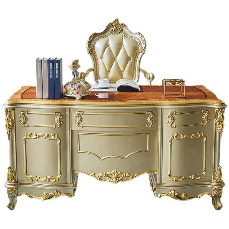欧式书桌奢华全实木别墅实木桌办公桌高档香槟金书台书房家具套装