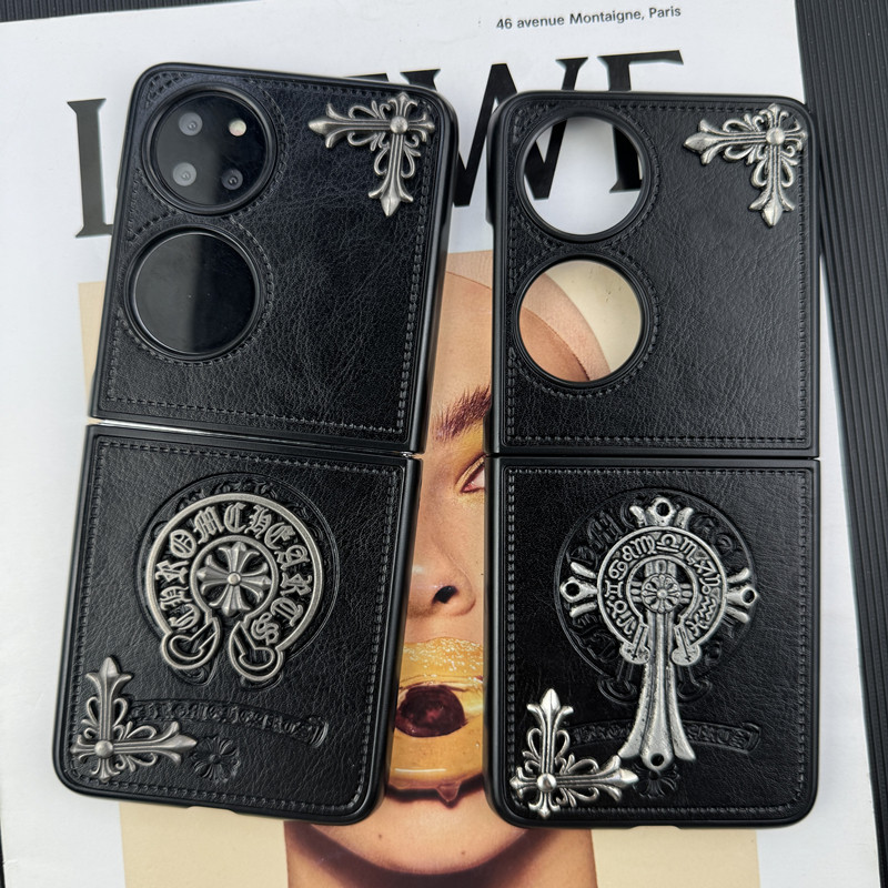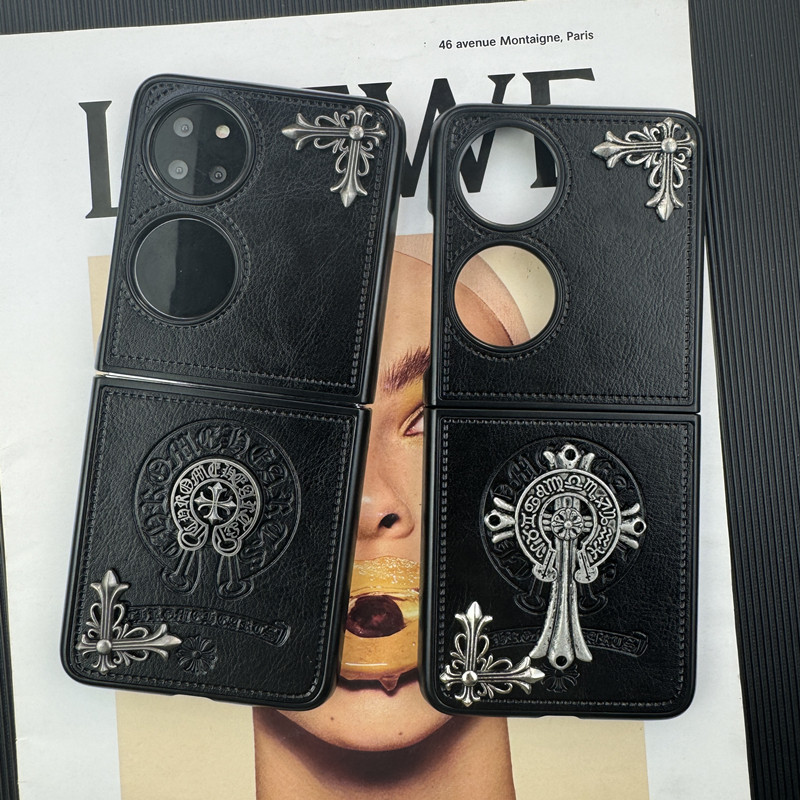 适用华为pocket2手机壳新款P50Pocket宝盒保护套复古高级感pocket S折叠屏浮雕立体十字架皮质奢华女大牌外壳