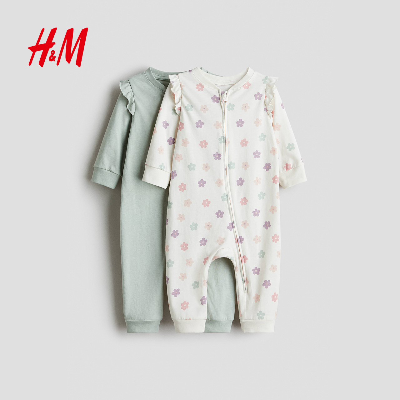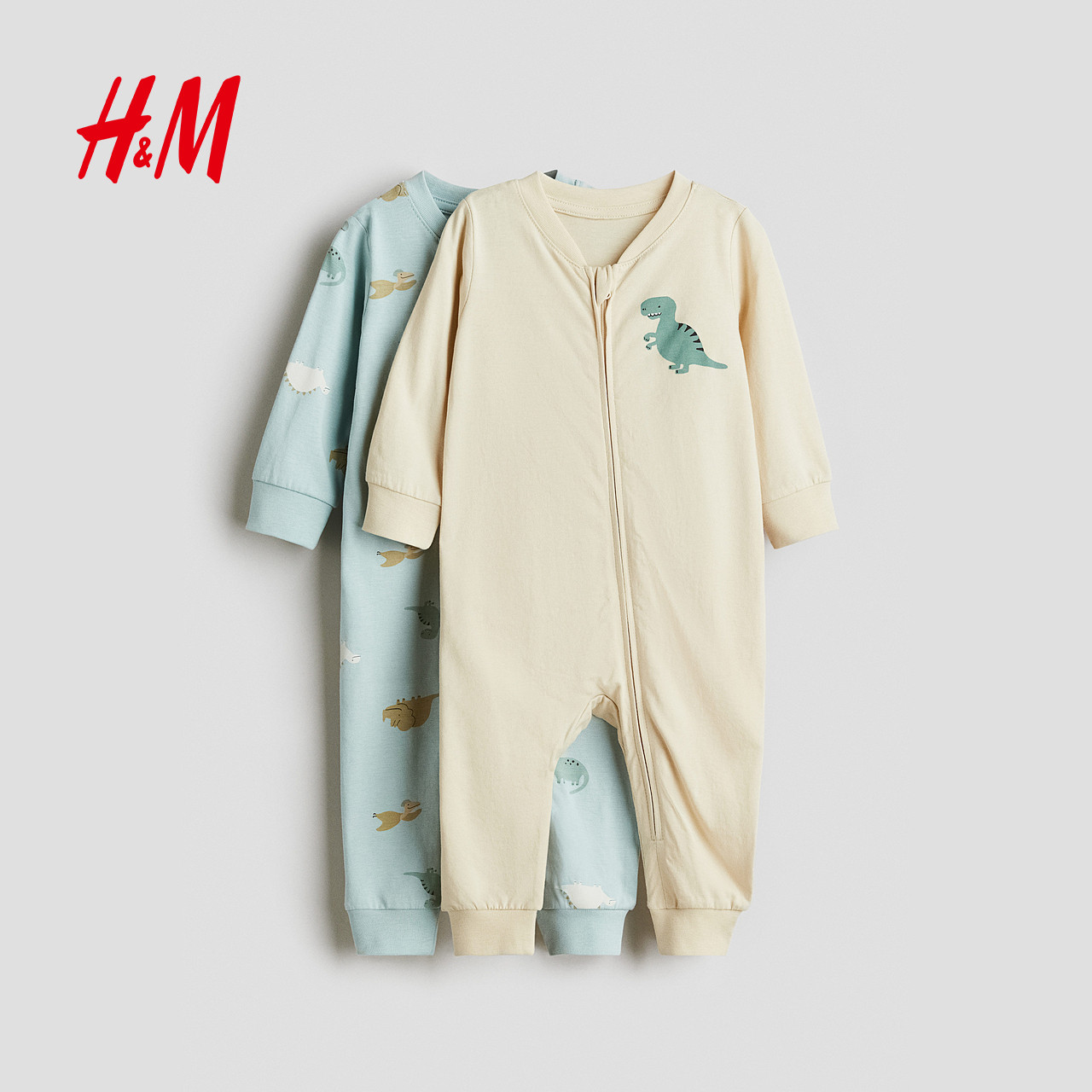 HM童装男婴家居服2件装春季舒适棉质印花连体睡衣连体衣1085413