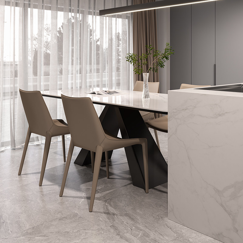 进口岩板餐桌轻奢现代亮光面家用客厅定制岛台饭桌意式极简餐桌椅