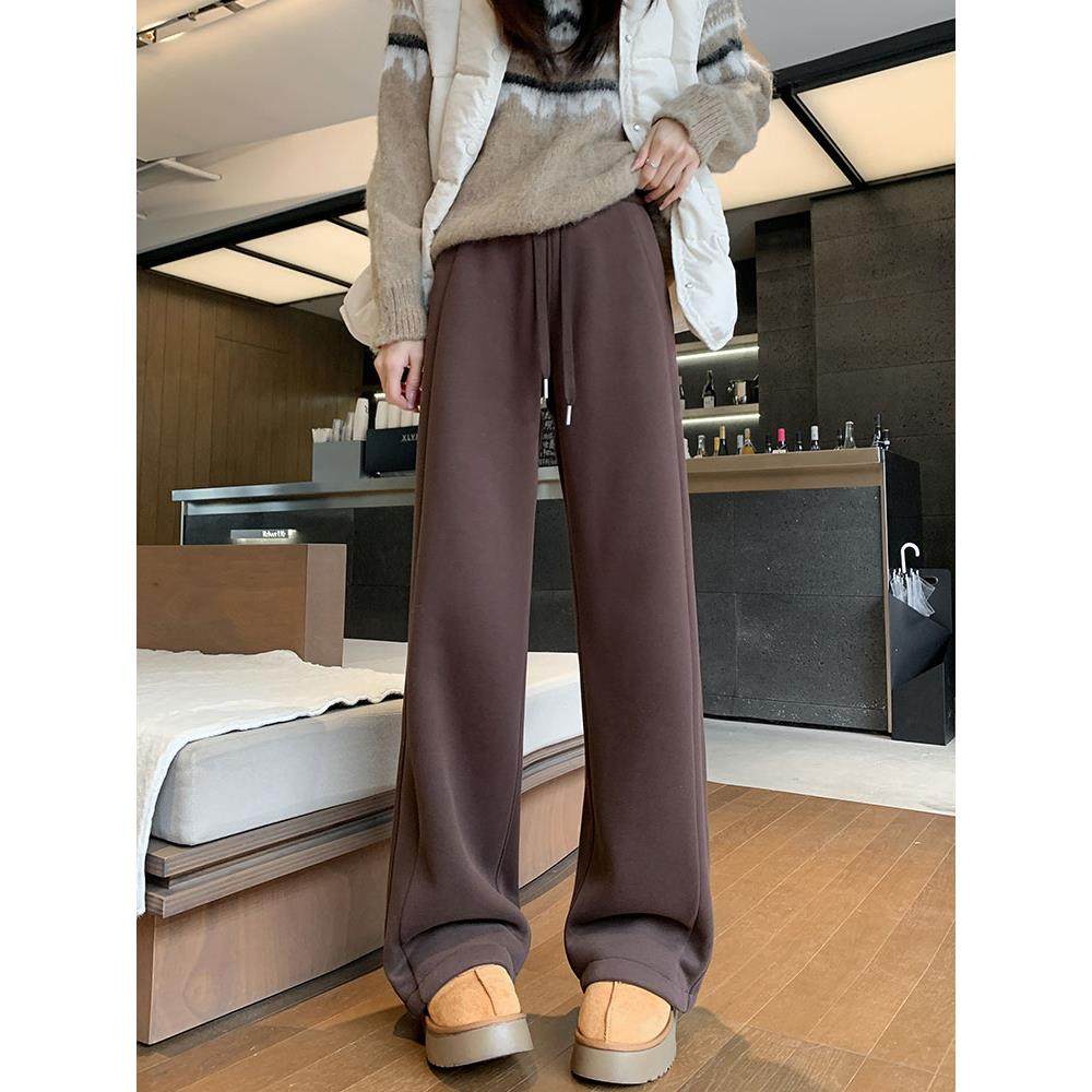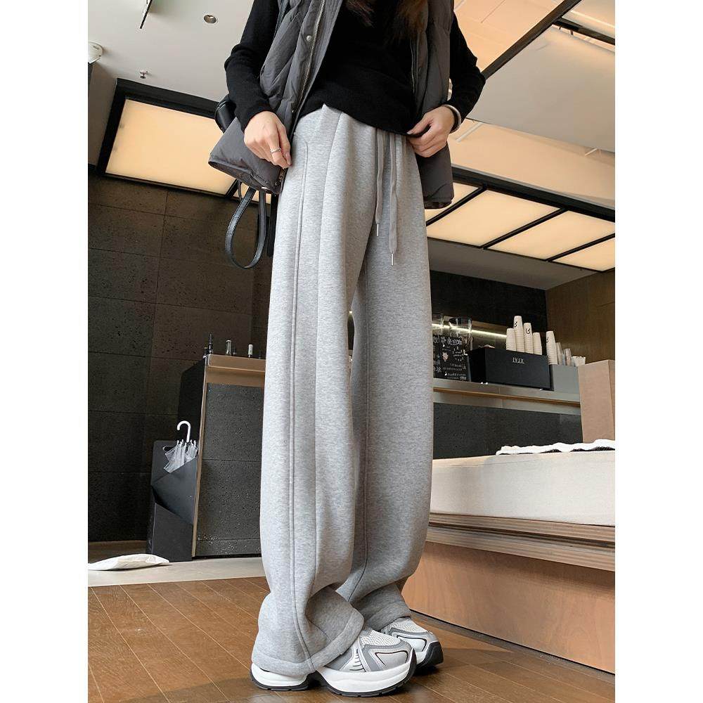 加绒卫裤女2025新款直筒窄版阔腿裤加厚大码运动裤小个子加长白色