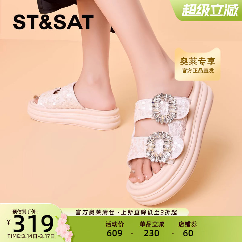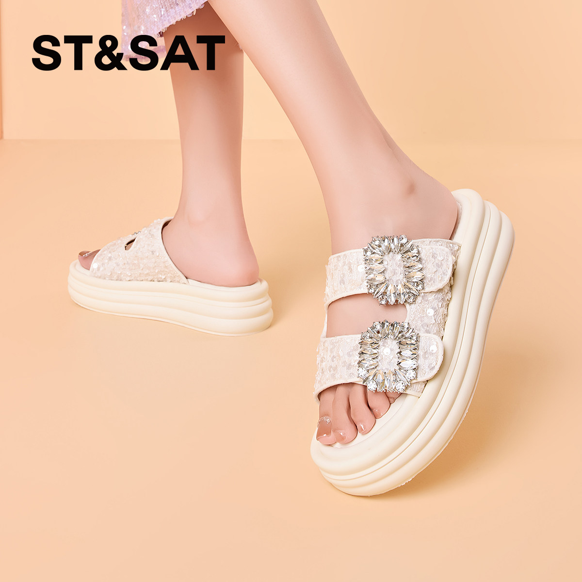 星期六水晶风格时尚厚底增高凉鞋夏季新款百搭舒适拖鞋女鞋