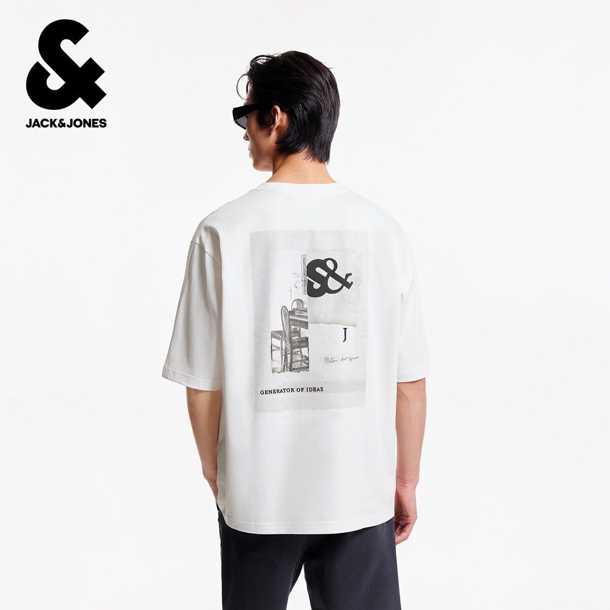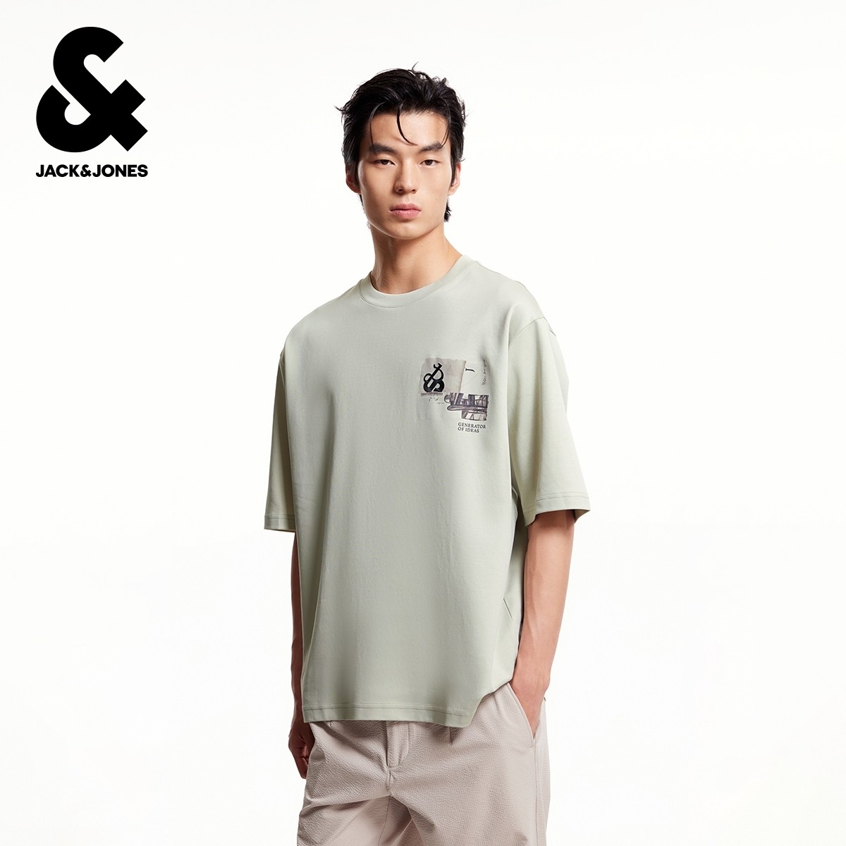 杰克琼斯男装夏季新款男士短袖男款经典流行印花宽松休闲T恤上衣