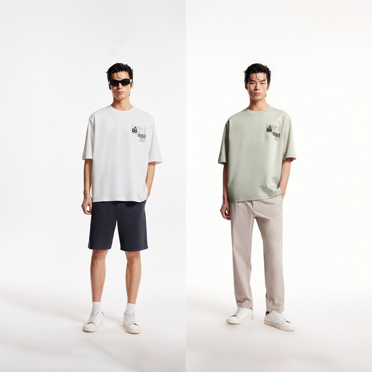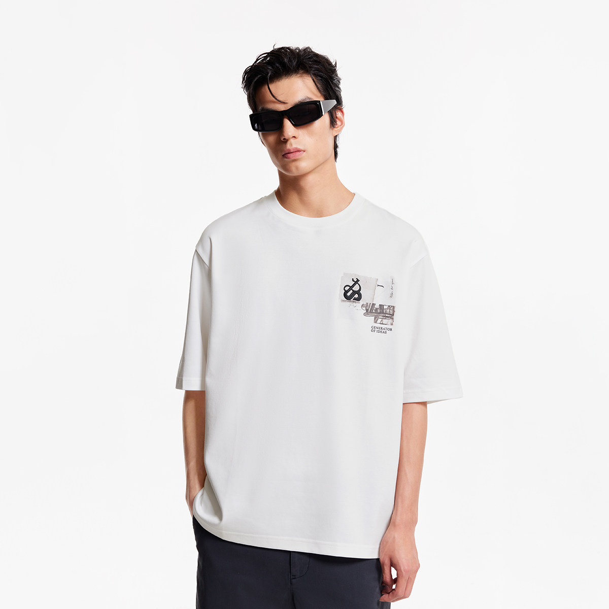 森马短袖T恤男纯棉打底衫修身长袖25夏季新款纯色内搭上衣简约白