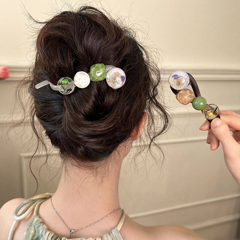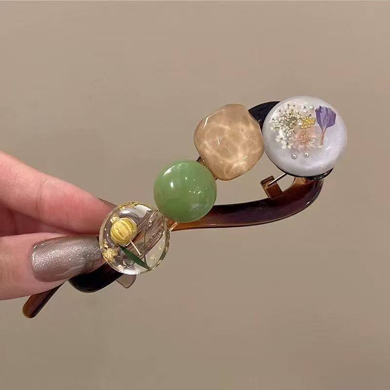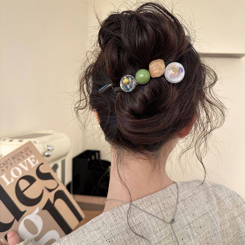 精致简约珠珠一字扭扭夹2025新款高级感后脑勺气质盘发夹优雅百搭
