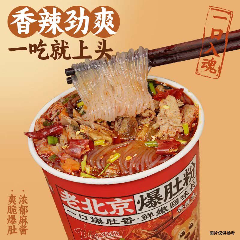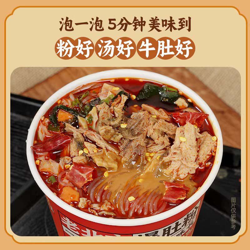 麻酱爆肚粉桶装重庆酸辣粉即食关东煮夜宵蒜蓉花甲粉批发价一整箱