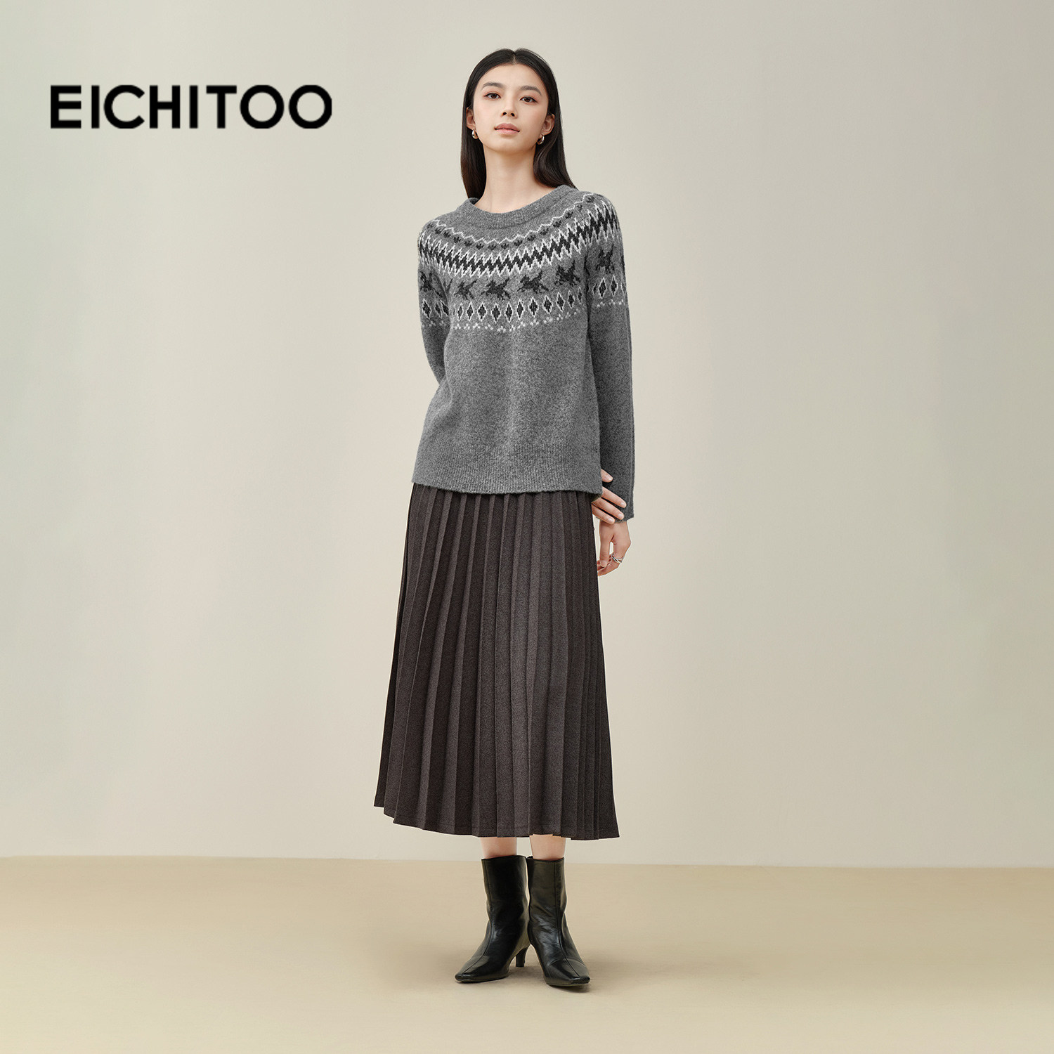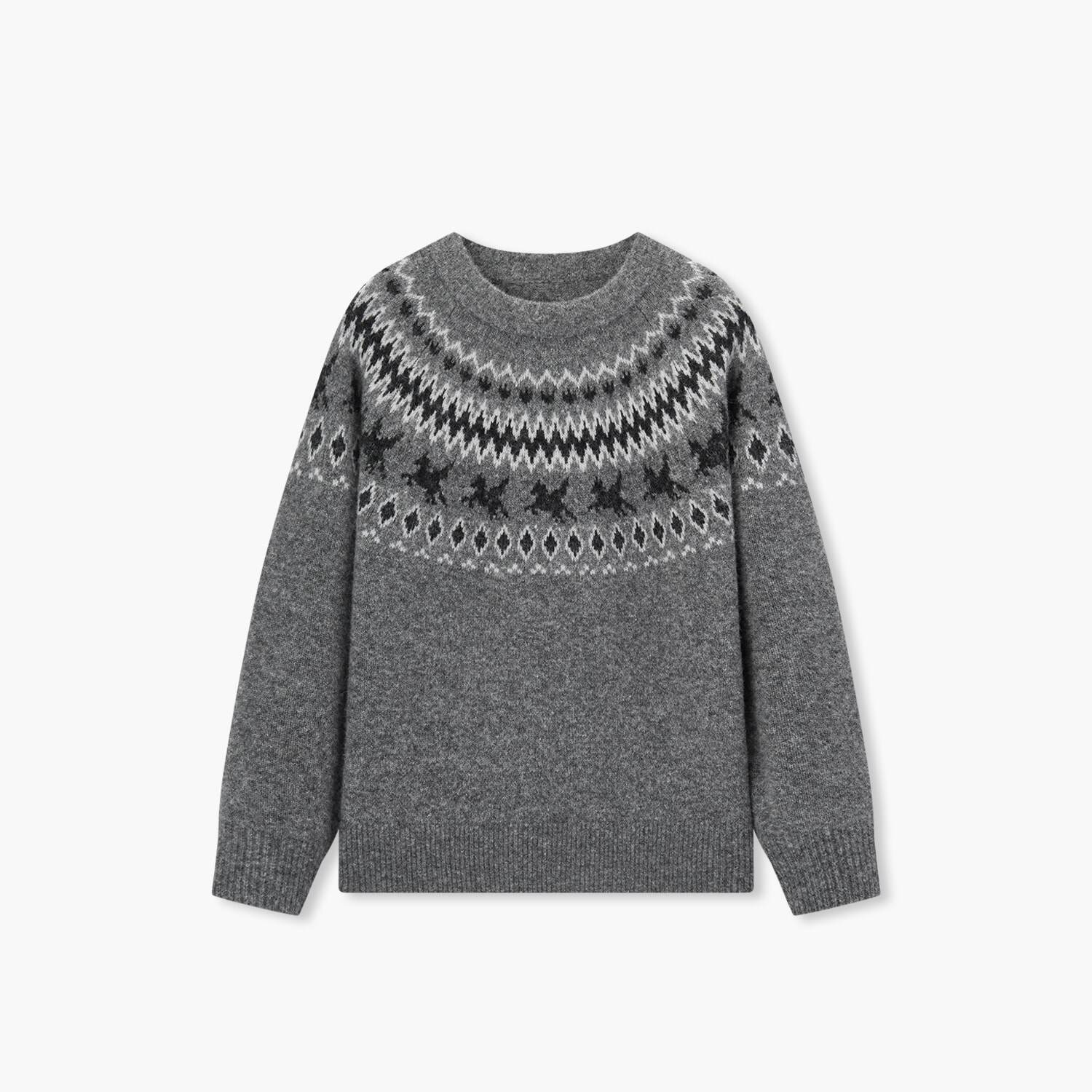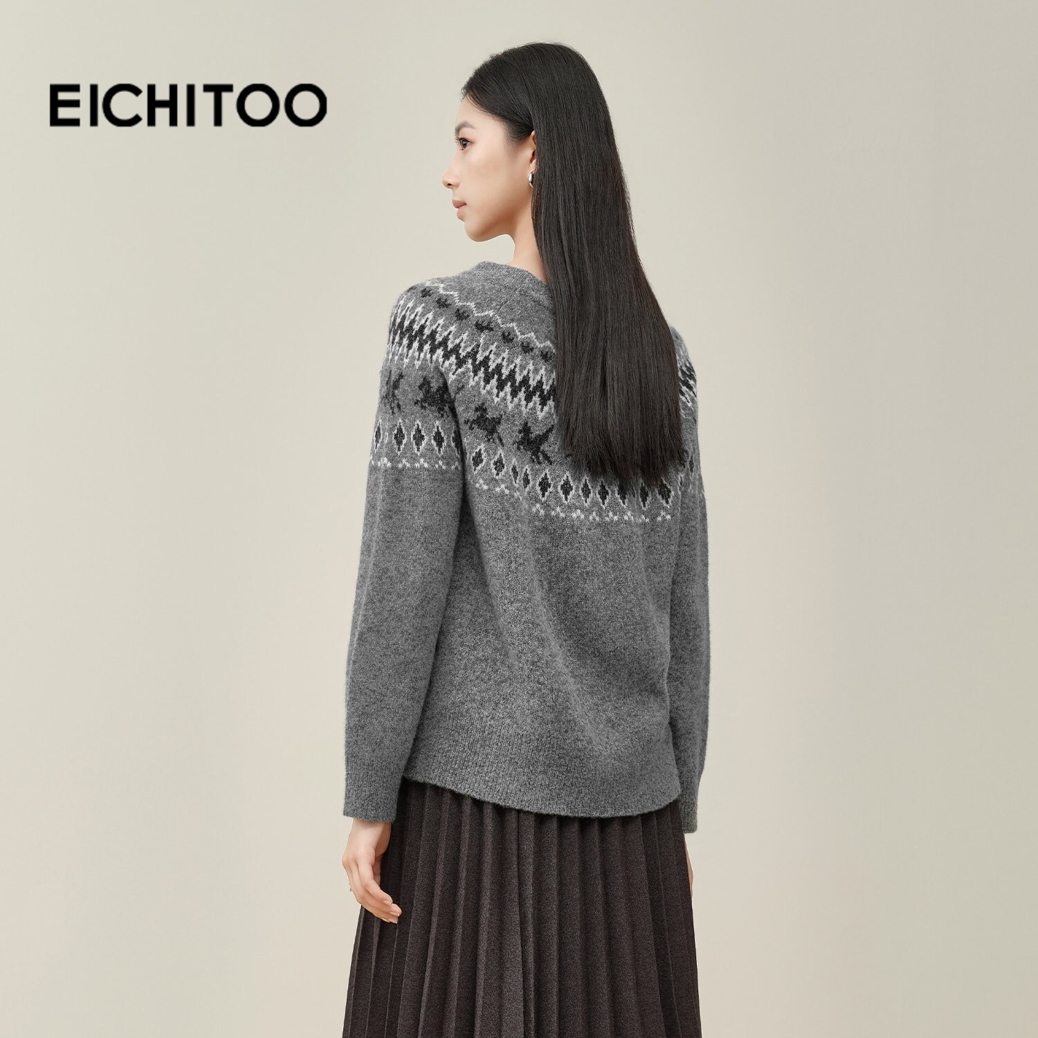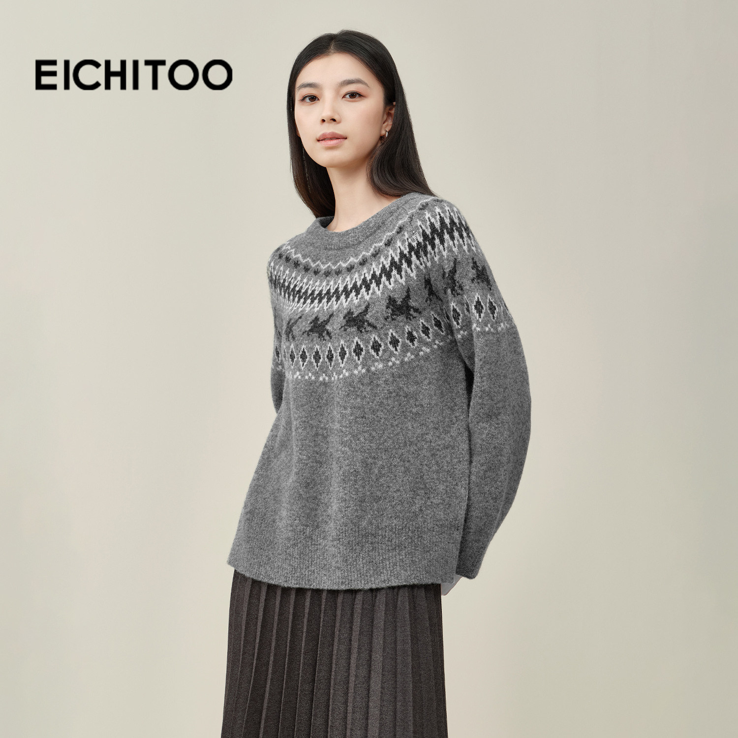 爱居兔复古提花针织衫2025年冬季新款女慵懒廓形艺术感毛衣