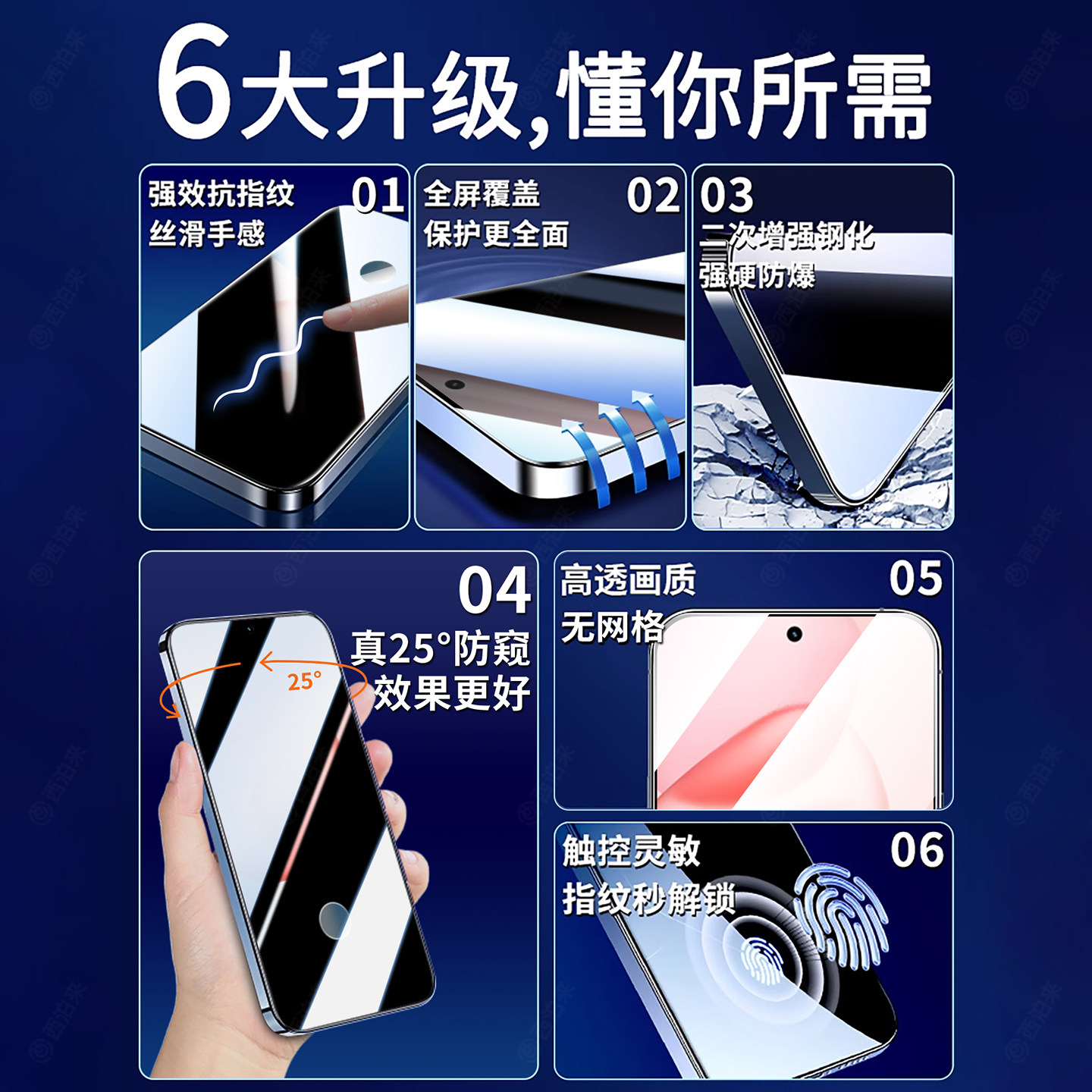 [超龙晶秒贴]第一卫适用小米17promax钢化膜15pro手机膜14红米k90/80/70/13防窥note12至尊版s新款ultra保护