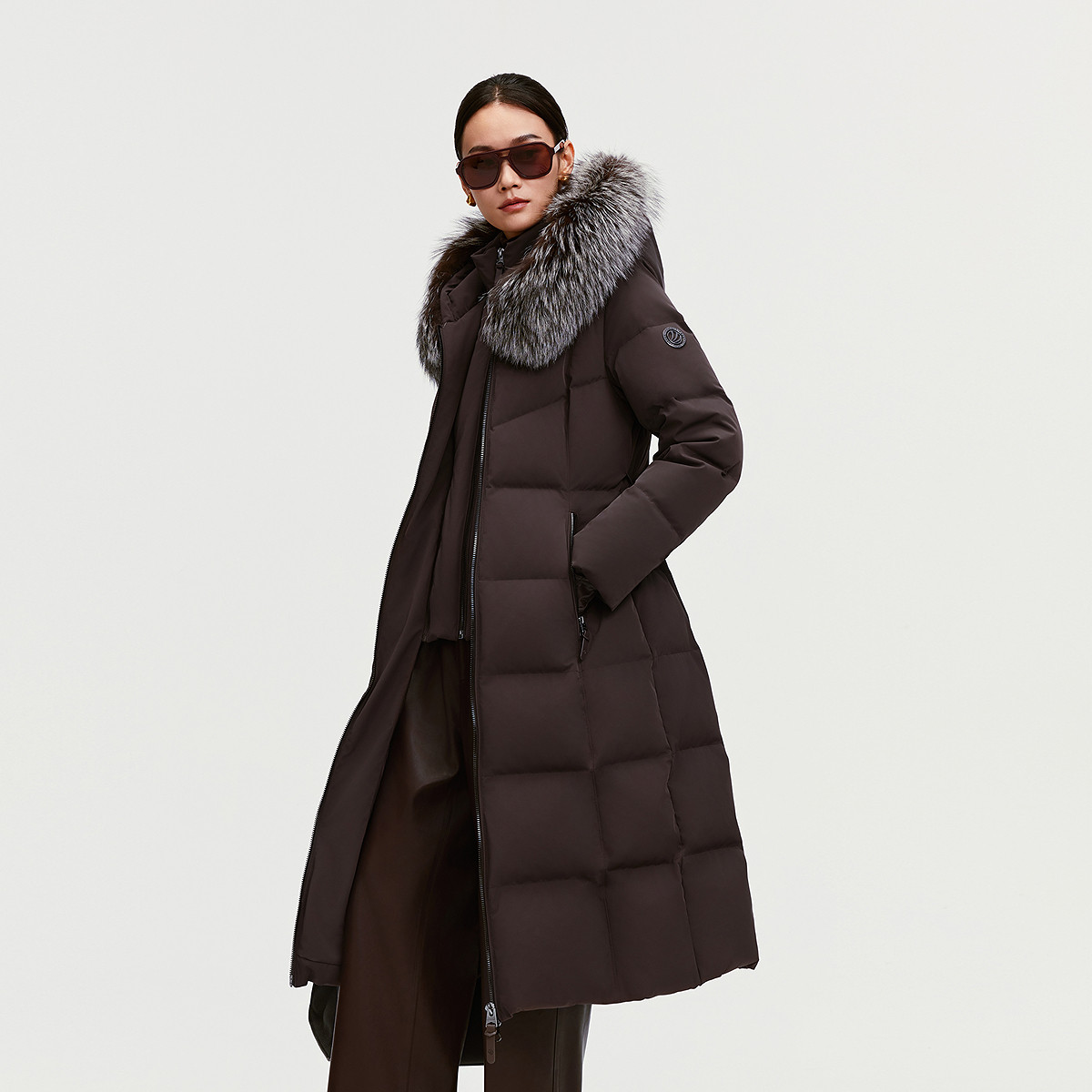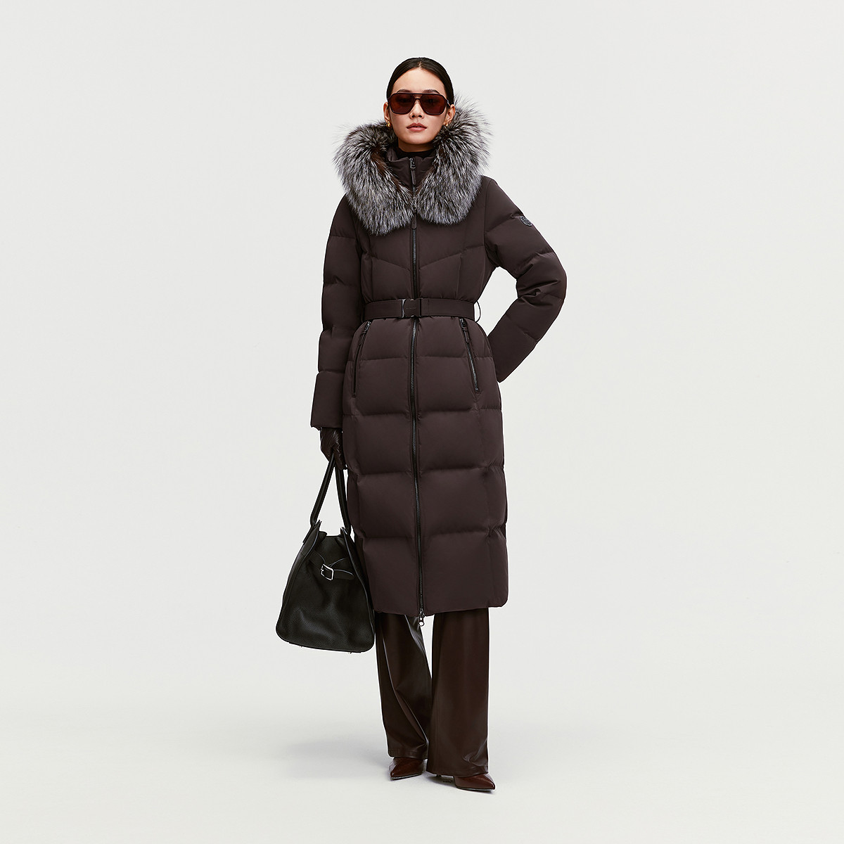 波司登2025新款羽绒服女高端商务90鹅绒大毛领中长款保暖加厚修身