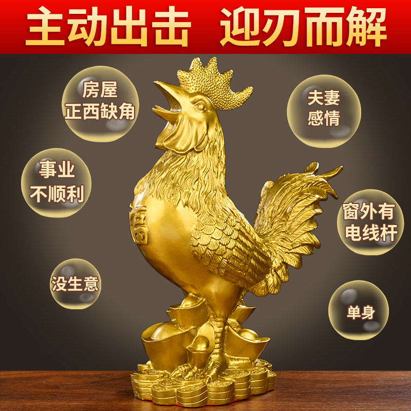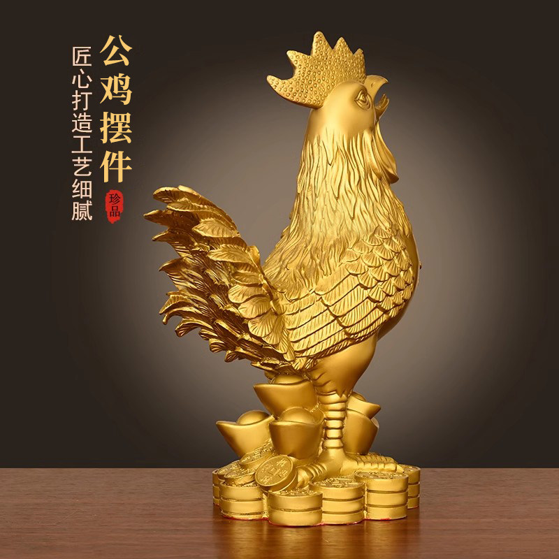 纯黄铜公鸡摆件生肖鸡吉祥物铜鸡报晓金鸡报喜家居办公装饰工艺品