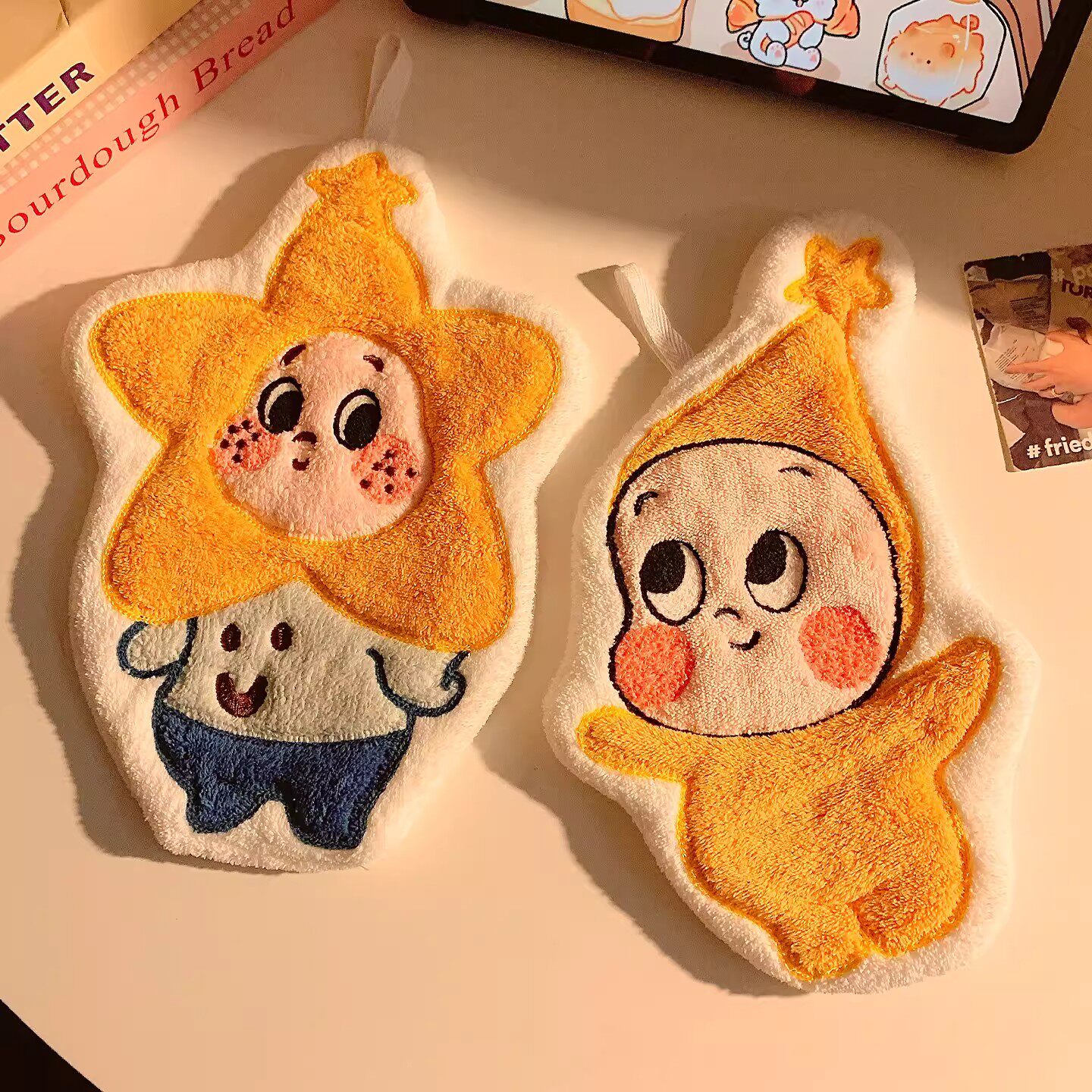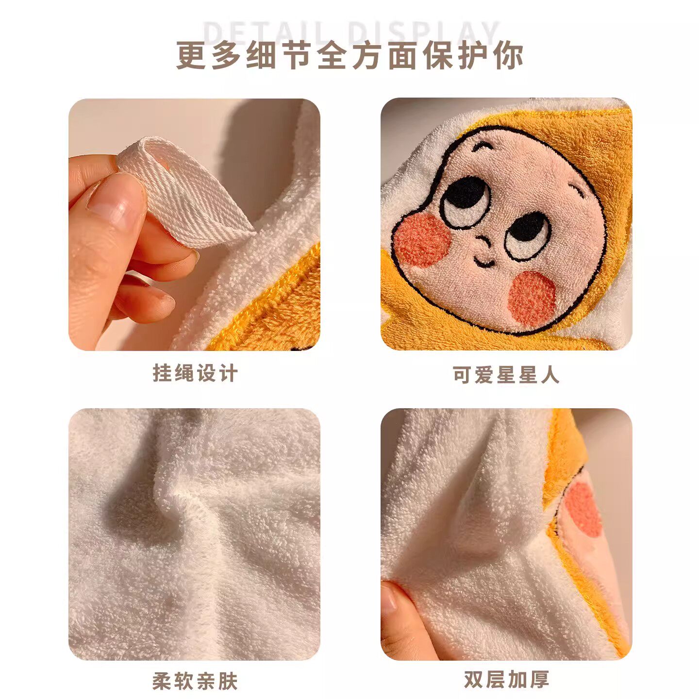 星星人擦手巾挂式可爱手帕厨房卫生间超强吸水加厚珊瑚绒抹手毛巾
