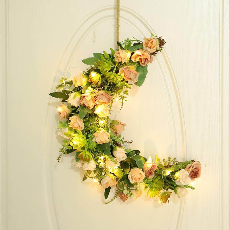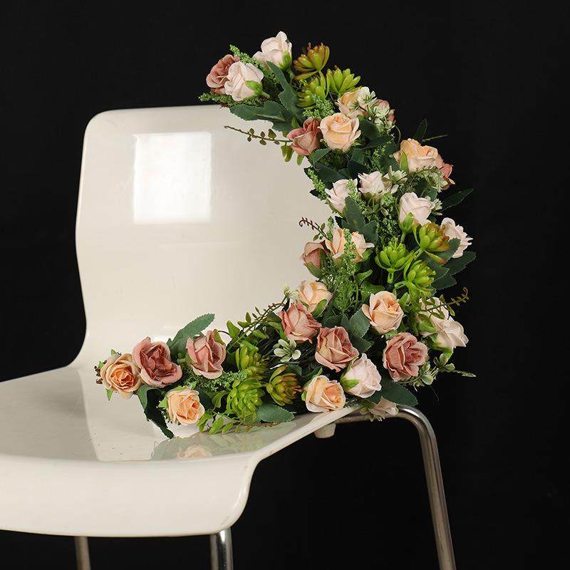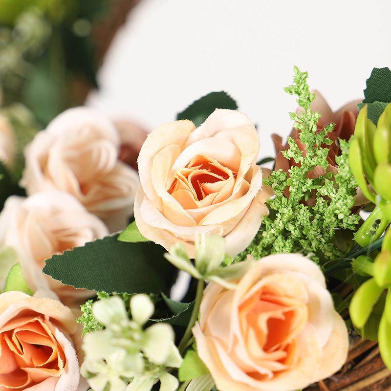 鸿禹 仿真玫瑰花羊角藤壁挂门挂仿真植物节日装饰 多肉玫瑰挂
