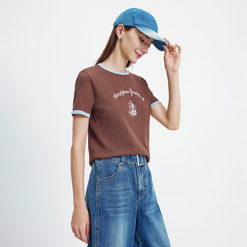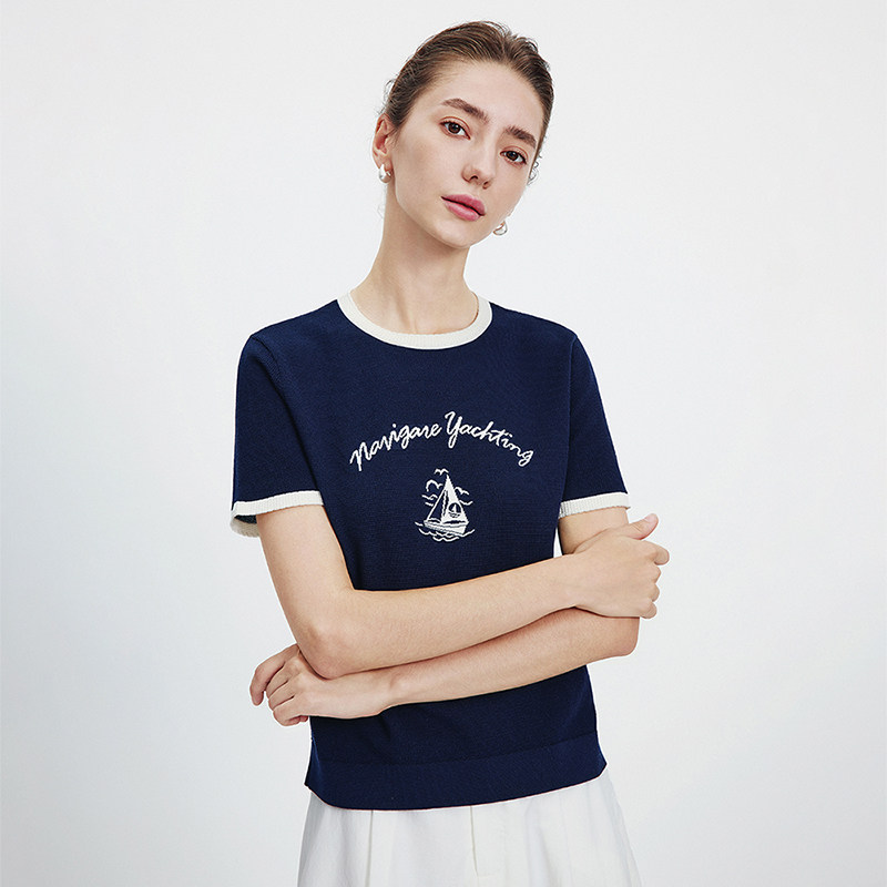 Navigare意大利小帆船白色基础圆领体恤衫女2026夏季休闲短袖T恤