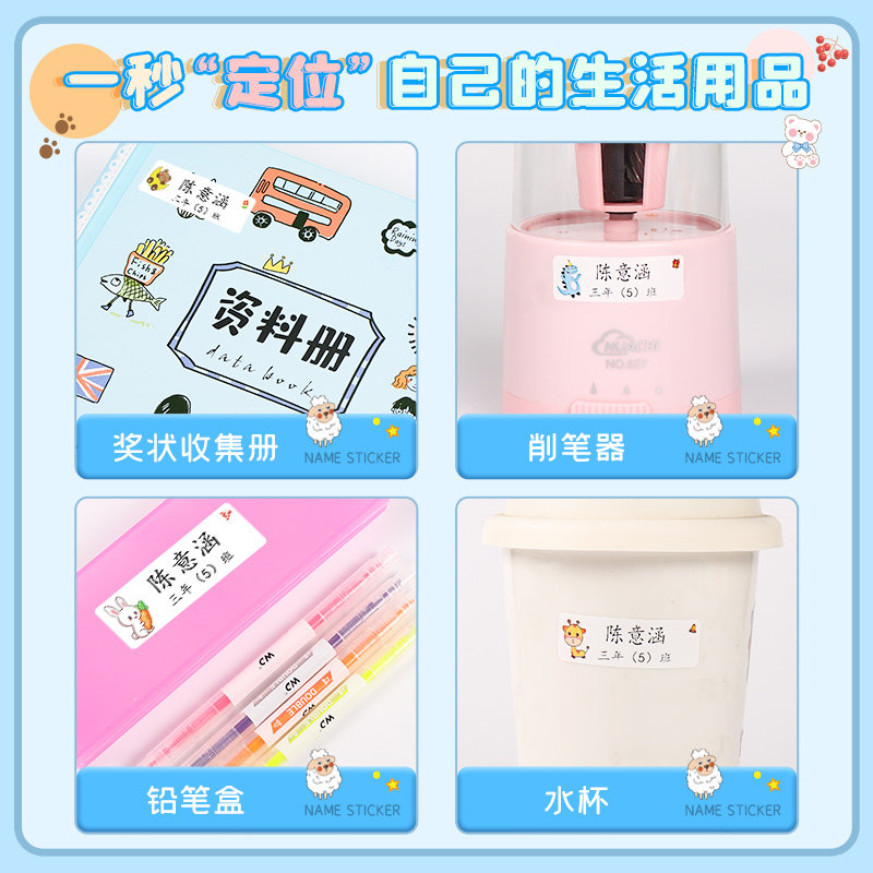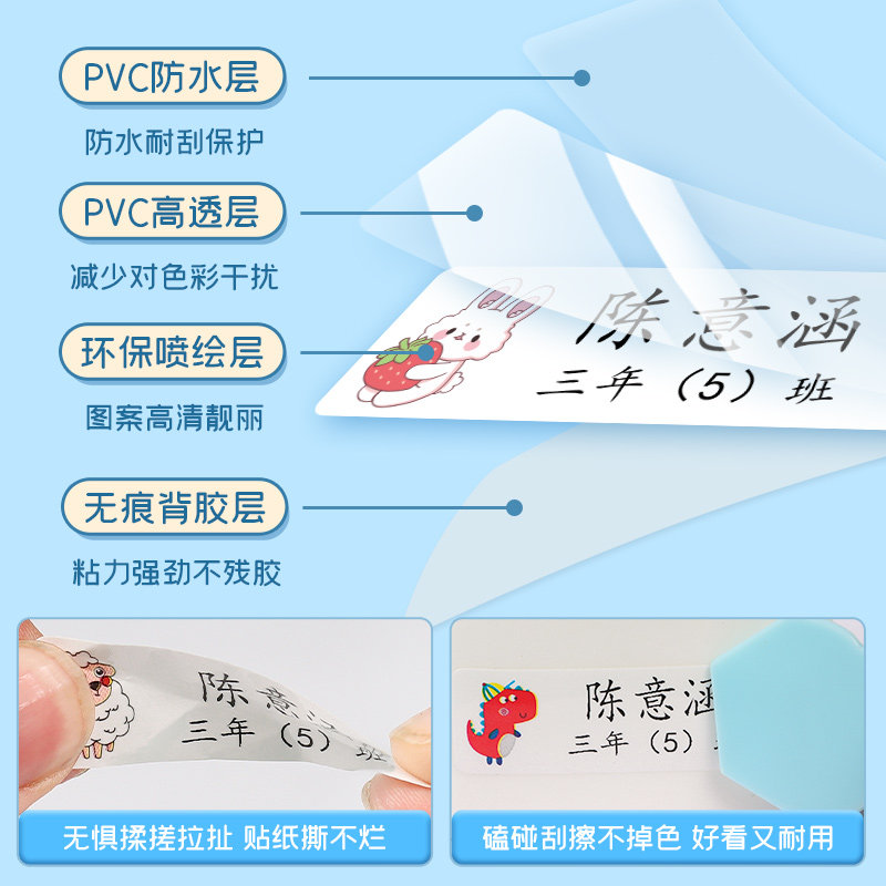 儿童姓名贴可定制小学生专用透明防水防撕幼儿园宝宝姓名标签贴一年级二年级自粘卡通水杯贴纸书本标记分类贴