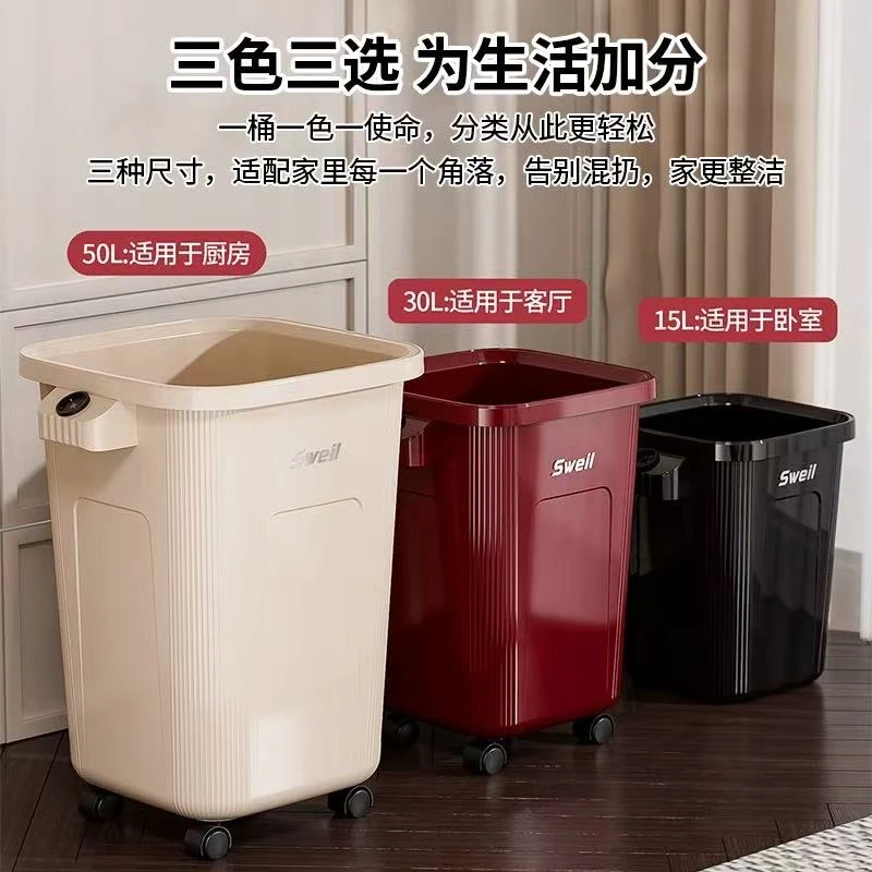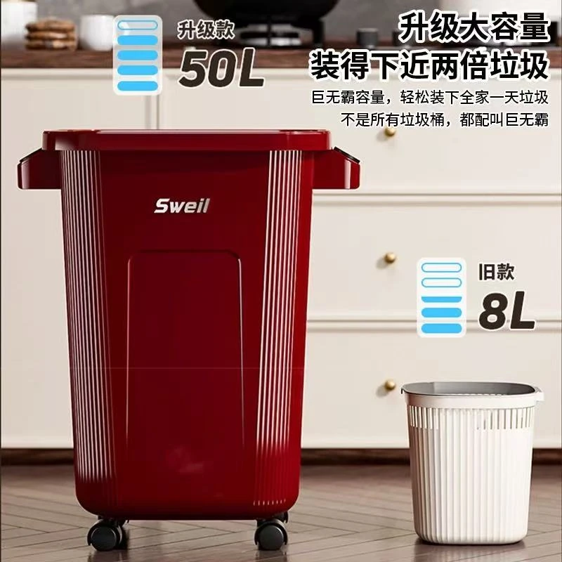 厨房垃圾桶专用家用2025新款客厅高颜值免弯腰大容量带轮子可移动