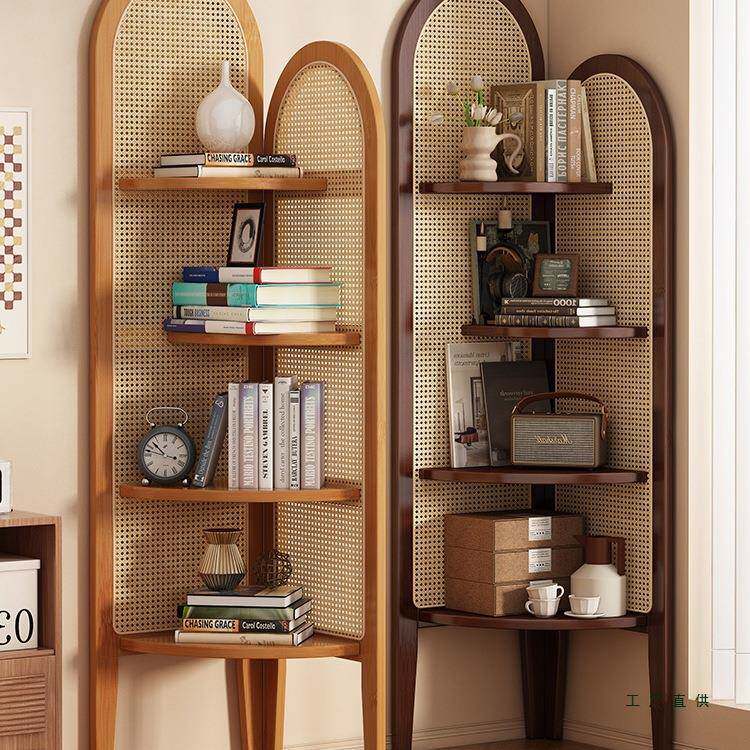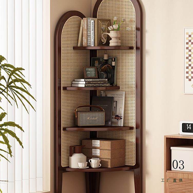 转角置物架实木落地墙边角收纳柜客厅三角柜子餐厅拐角书架储物柜