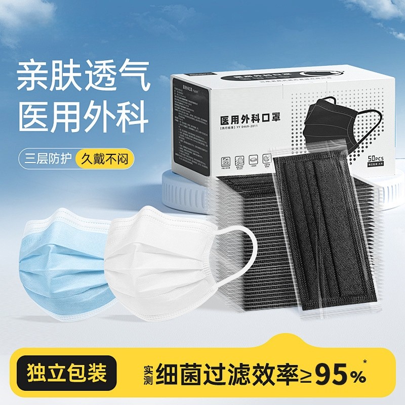 一次性医疗医用外科口罩正品成人独立包装灭菌级三层防尘防菌黑色