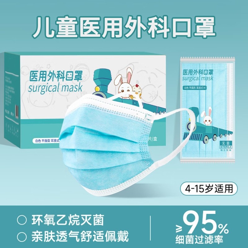 100只儿童医用外科口罩一次性官方旗舰店正品3到6小孩专用8到12岁
