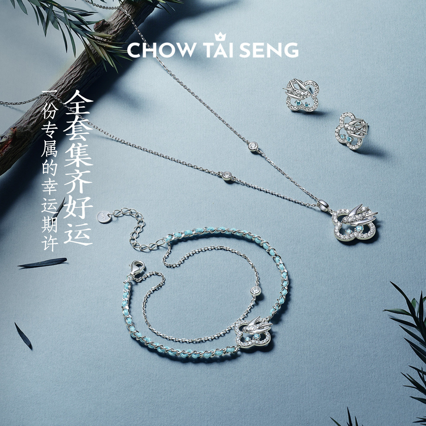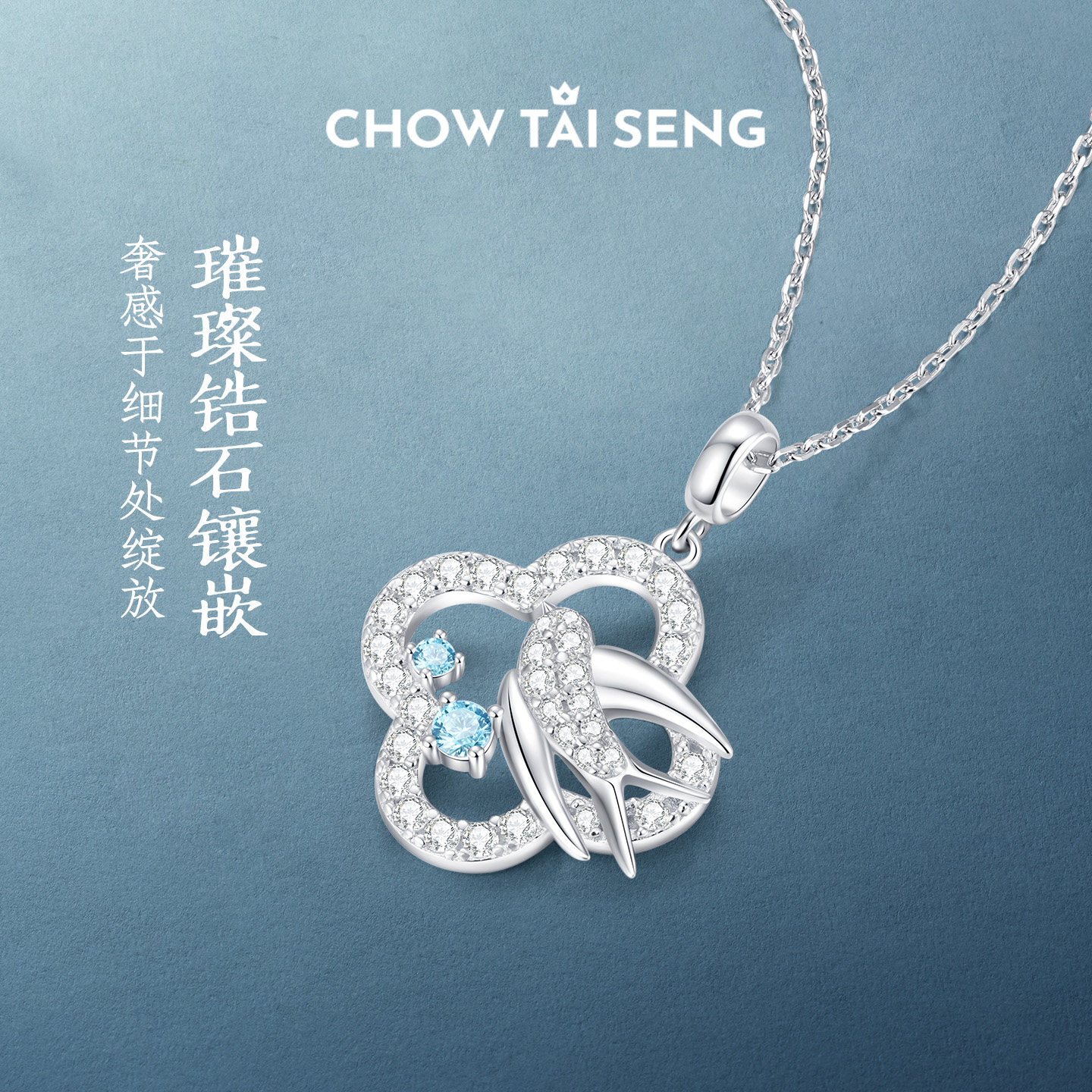 周大生四叶草灵燕项链S925纯银新中式高级感锁骨链生日礼物送女友