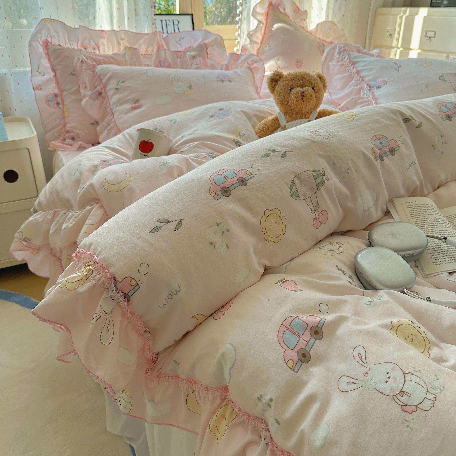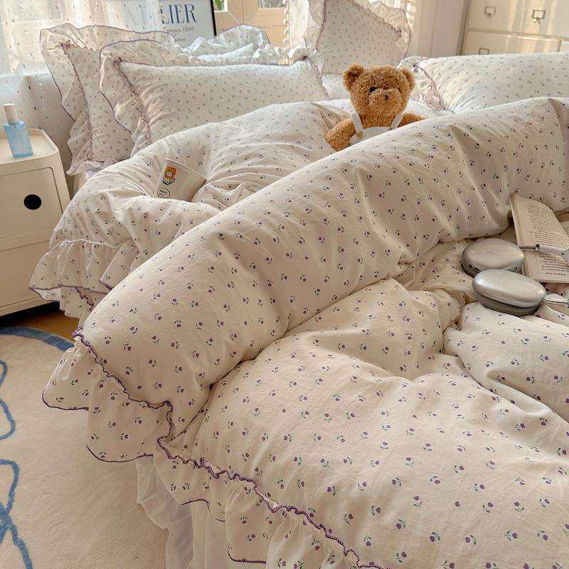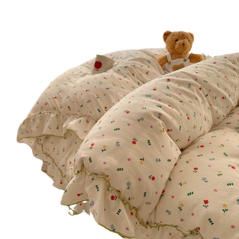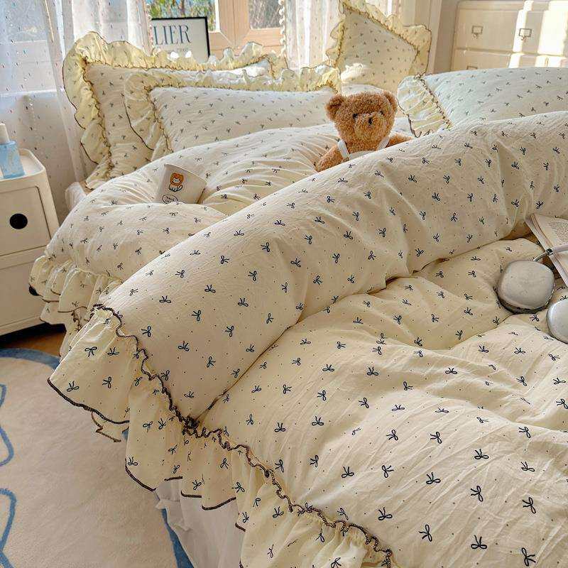 法式花边床上用品四件套水洗棉四季通用被套罩床裙床笠床单三件套