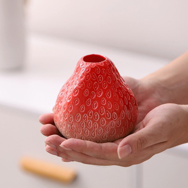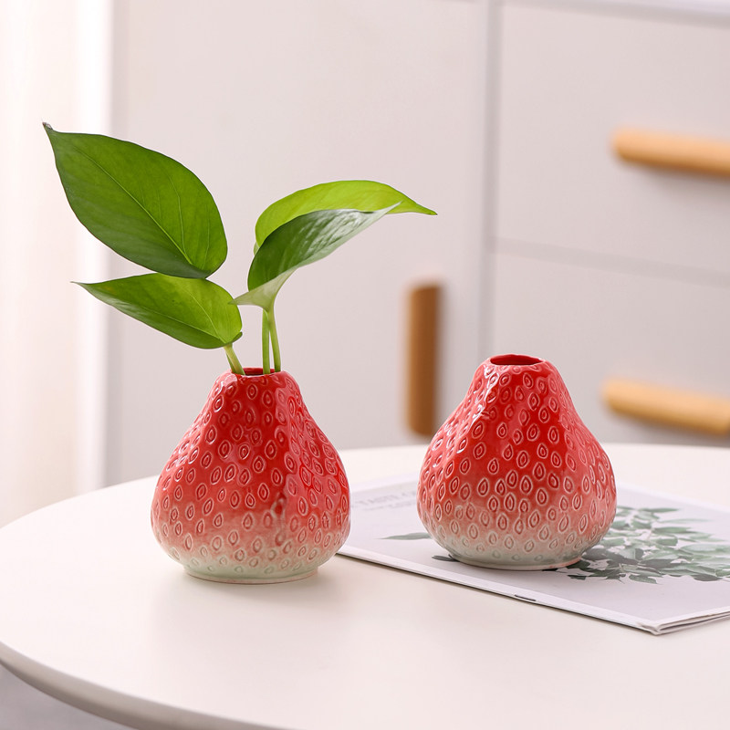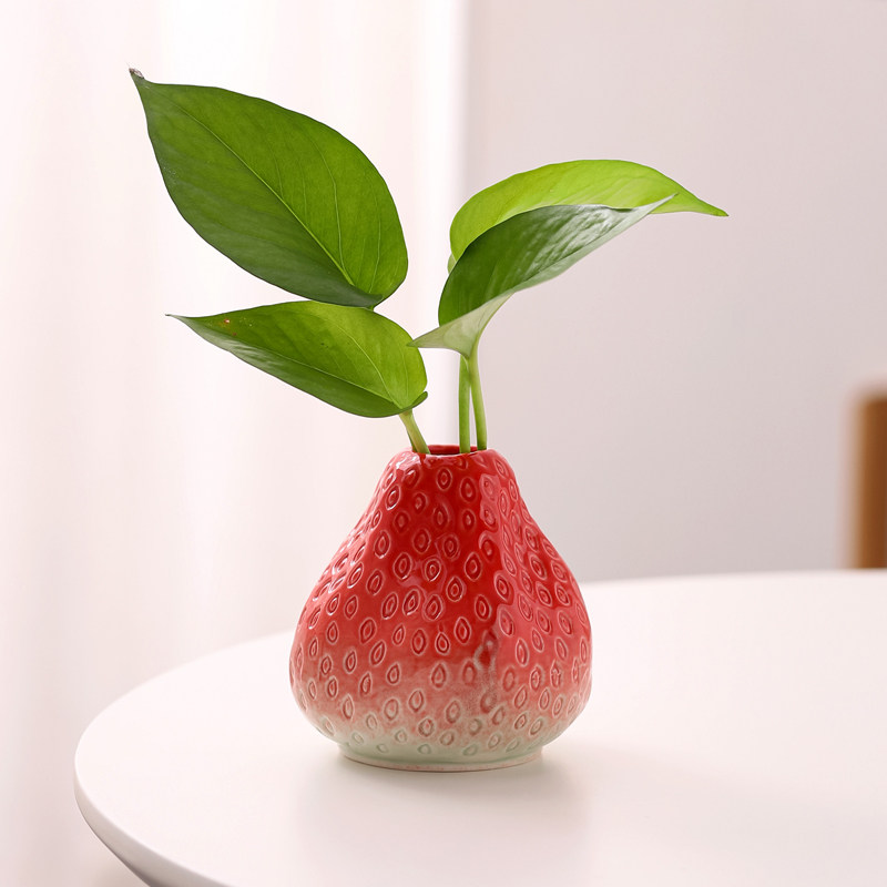 莓创意草莓陶瓷水培花瓶桌面绿萝插花瓶可爱家居装饰摆件台面造型